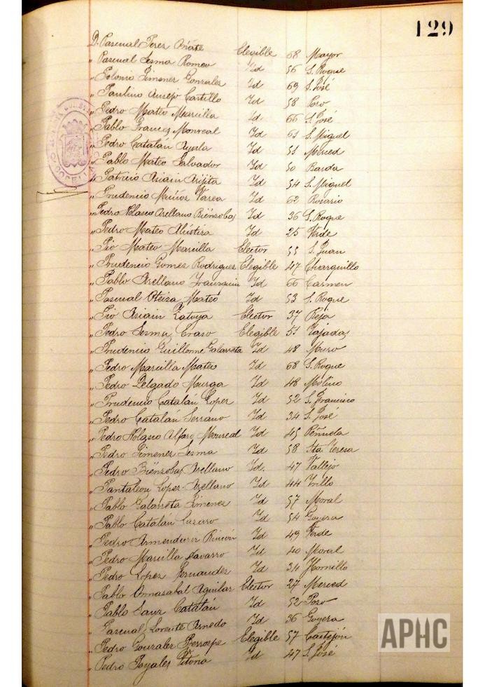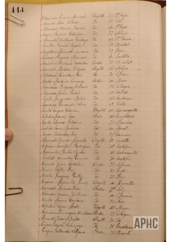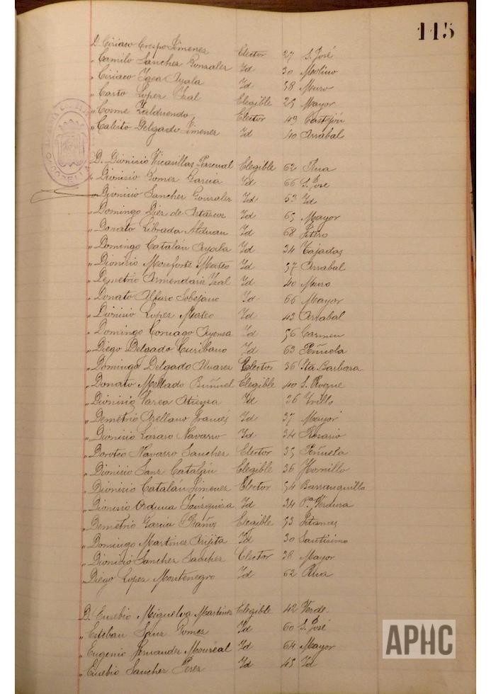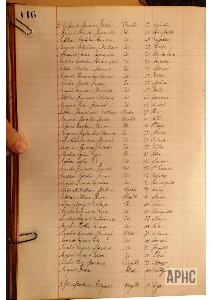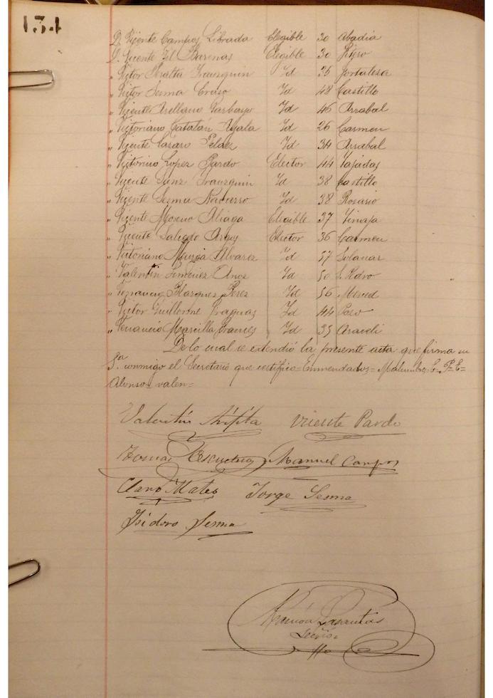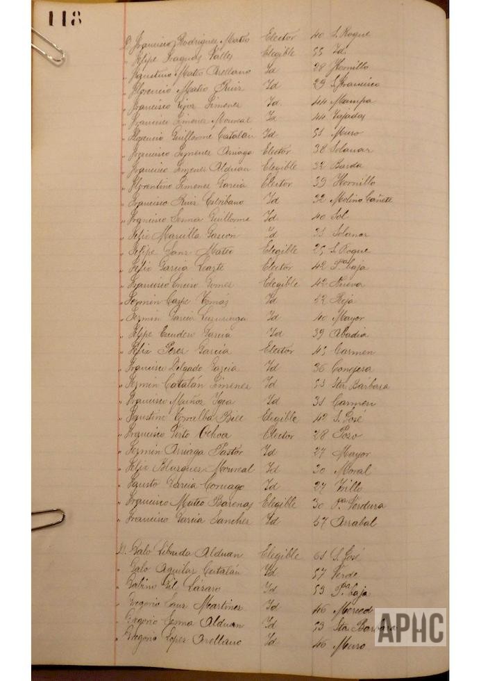 Se deja constancia en acta, de la lista de electores y elegibles para Concejales del Ayuntamiento, figurando la siguiente relación, que se transcribe, por los datos de interés que aporta, pues puede considerarse un Censo de cabezas de familia de ese año: