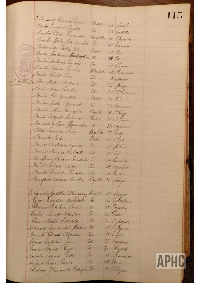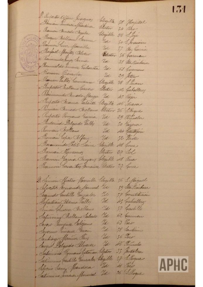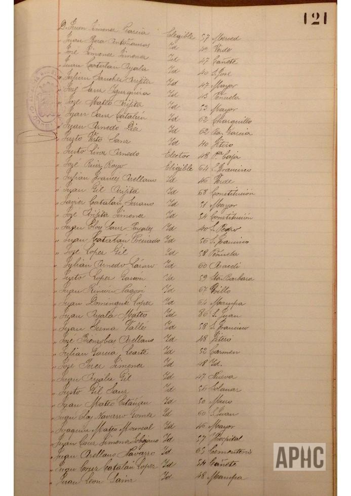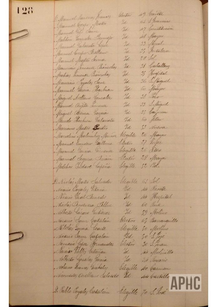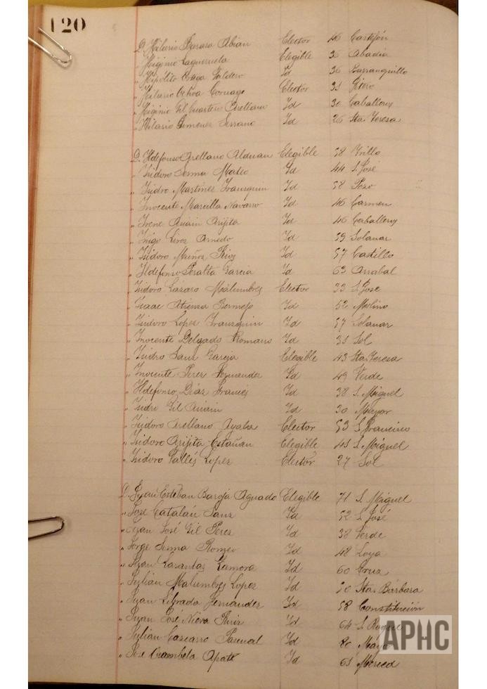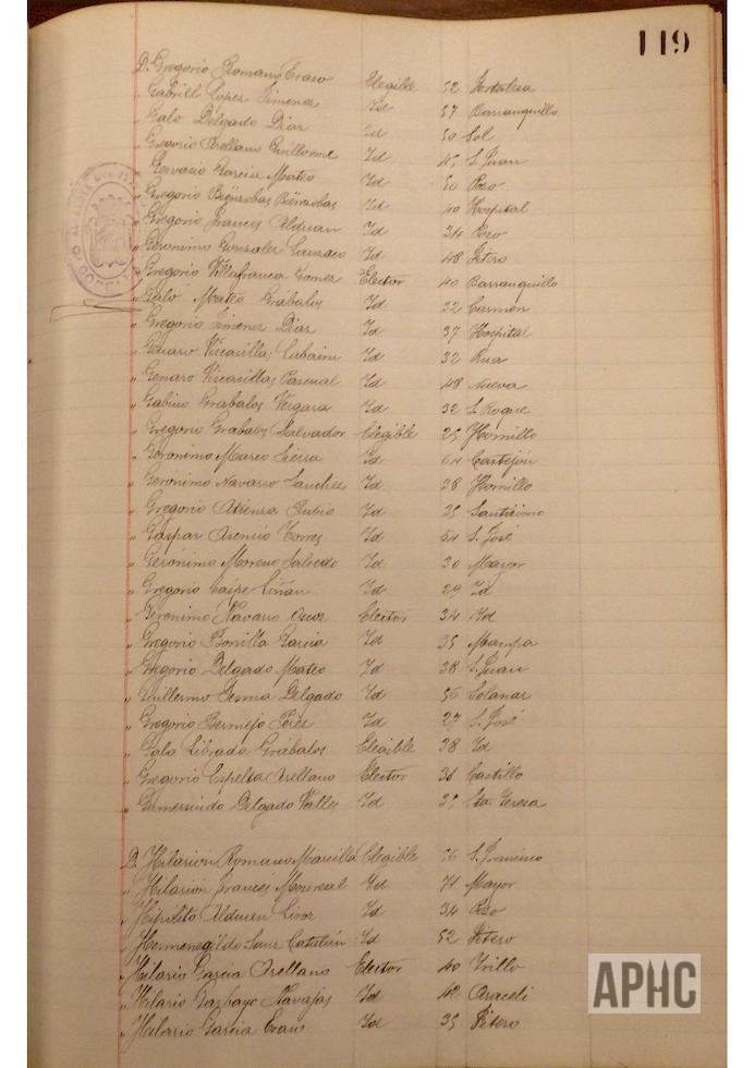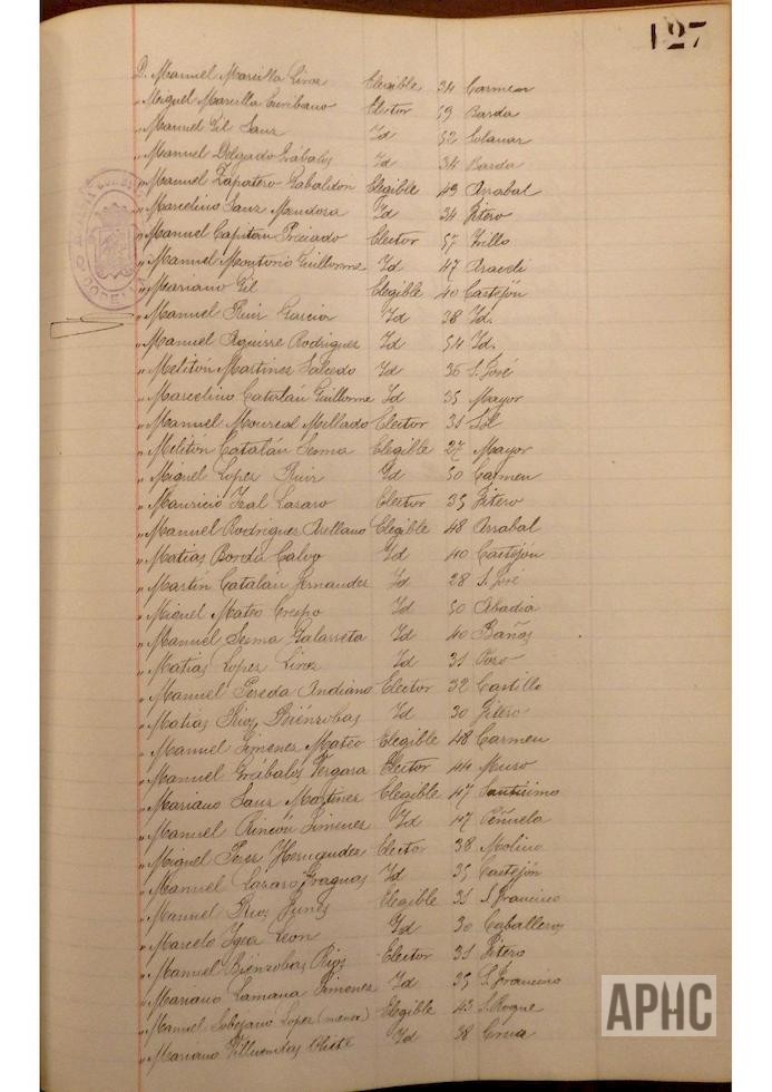 Se deja constancia en acta, de la lista de electores y elegibles para Concejales del Ayuntamiento, figurando la siguiente relación, que se transcribe, por los datos de interés que aporta, pues puede considerarse un Censo de cabezas de familia de ese año: