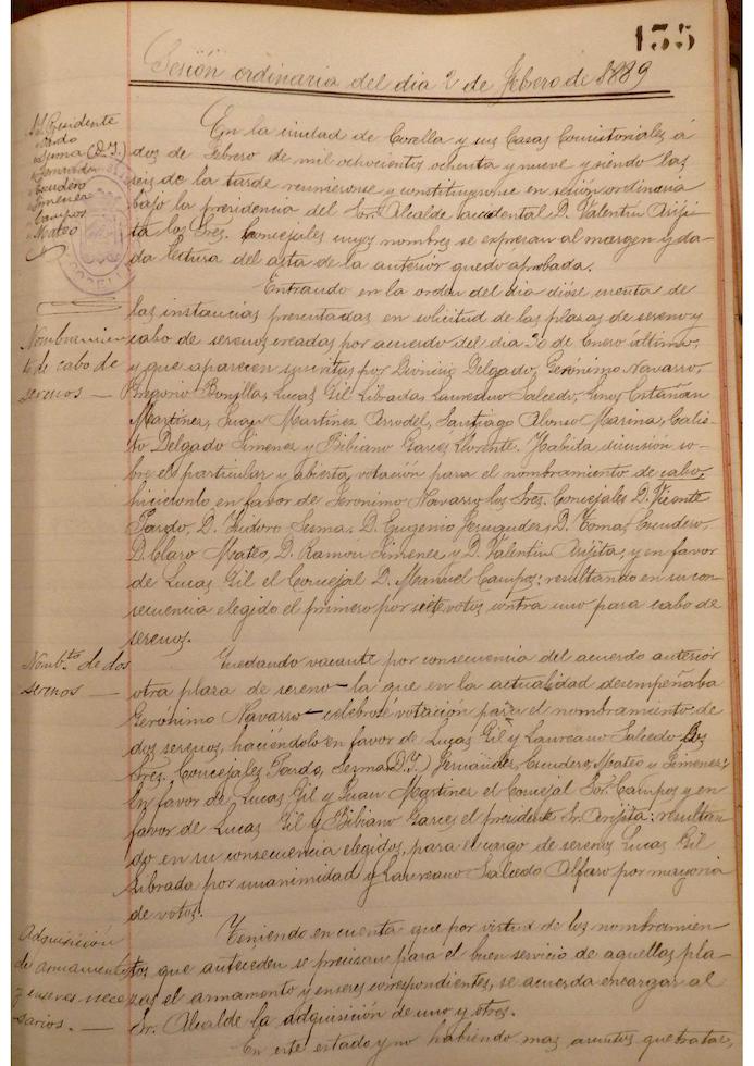 Vistas las solicitudes presentadas, se acuerda nombrar para Cabo de Serenos a Gerónimo Navarro y para el cargo de Serenos por las vacantes de 2 existentes, se nombra a Lucas Gil Librada y Laureano Salcedo Alfaro.- Se acuerda facultar al Alcalde para la compra de armamento y enseres necesarios para los cargos nombrados.