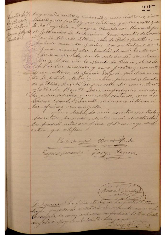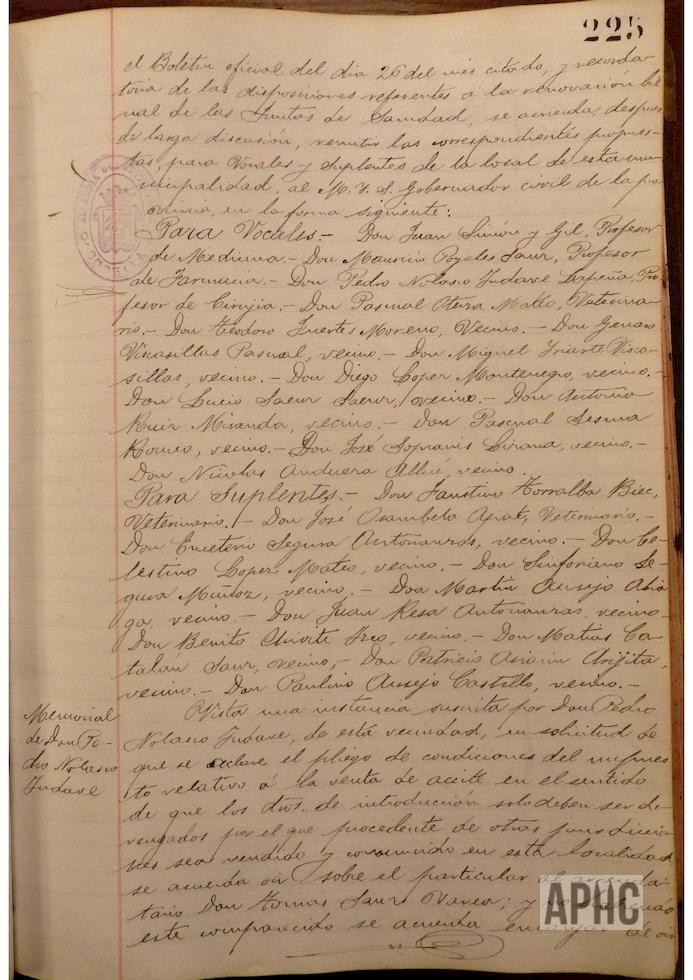 De conformidad con circular del Gobernador sobre renovación de las Juntas locales de Beneficencia y Sanidad, se nombra a: Juan Simón Gil, médico; Mauricio Poyales Sanz, farmacéutico; Pedro Nolasco Indave Lapeña, Cirujano; Pascual Oteiza Mateo, veterinario; y los vecinos Teodoro Fuertes Mateo, Genaro Viscasillas Pascual, Miguel Iriarte Viscasillas, Diego López Montenegro, Lucio Sáenz Sáenz, Antonio Ruiz Miranda, Pascual Sesma Romeo, José Sopranis Lizana y Nicolás Andueza Allué. Para suplentes a Faustino Torralba Biu, veterinario; José Osambela Apat, veterinario; y los vecinos Emeterio Segura Antoñanzas, Celestino López Mateo, Sinforiano Segura Muñoz, Martín Ausejo Aliaga, Juan Resa Antoñanzas, Benito Chivite Izco, Matías Catalán Sanz, Patricio Asiain Arigita y Paulino Ausejo Castillo.- Entre varias cuentas abonadas, se indica la de Benito Díaz, por importe de 56,50 pesetas, por los braseros servidos durante el invierno último, a las oficinas municipales.