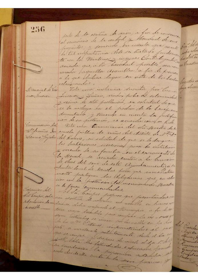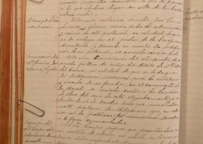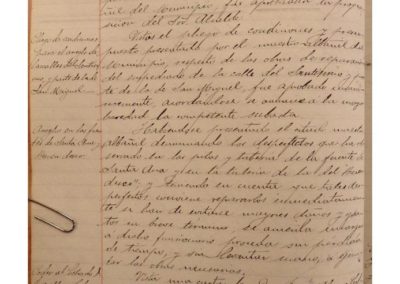 Se informa de cartas de Gregorio Garjón Barrena, manifestando haber comprado a Donato Gómez Trevijano, el proyecto del ferrocarril de Castejón a los Baños de Fitero y propone que sea de vía ancha, para que se integre en el de Soria a Sangüesa, del que es concesionario o del de Bardes, por Castejón y Roncal a la frontera francesa, caso de obtener le competente autorización; vista la importancia del tema, se acuerda debe ser tratado con la Veintena y Mayores Contribuyentes.- Vista la solicitud del Maestro de la Escuela Pública de Niños del distrito de Ntra. Sra. del Rosario, Leoncio Grijalvo, para que se le habilite vivienda familiar en el ex convento de la Merced, se acuerda recurrir a la Comisión de Obras de este Ayuntamiento, para que practique las diligencias, en relación a la solicitud de dicho Maestro.