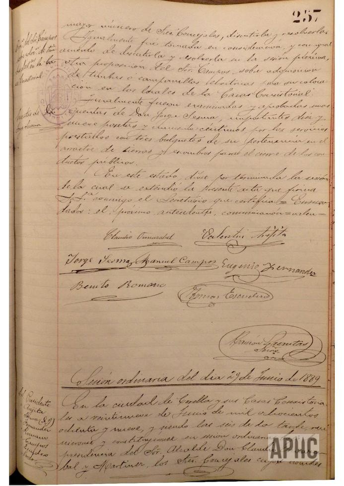 1889-06-29 – (Compra de un toro. Compra/Instalación de Timbres en Oficinas Municipales. Renuncia Médico).