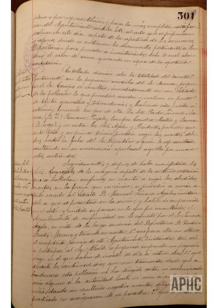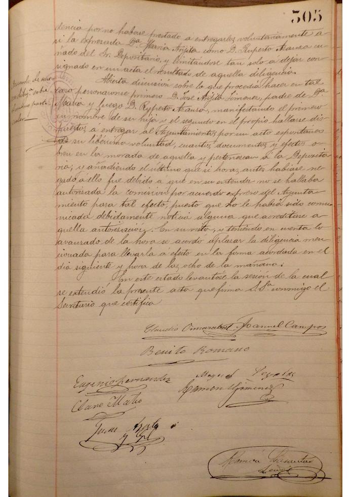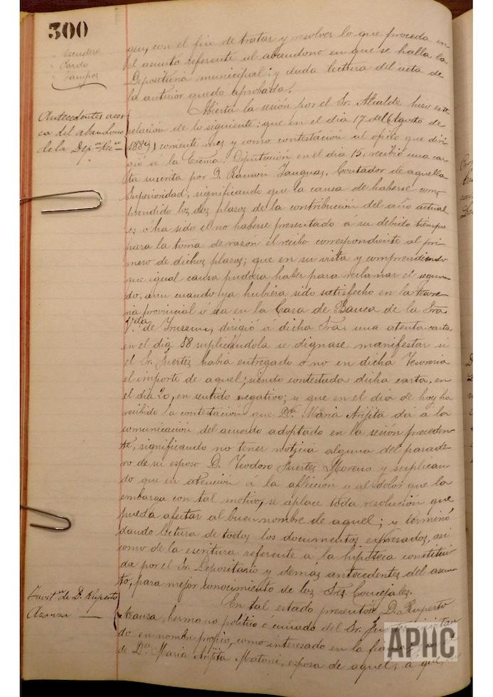 Se informa de la no existencia de documentos en los armarios de la Depositaría y la posterior manifestación de proceder a la entrega de los documentos obrantes en casa del Depositario Sr. Fuertes. n diversas sesiones se trata sobre la obtención de documentos relativos a la Depositaría, así como gestiones oportunas sobre bienes, fianzas y avalistas del Depositario, gestiones practicadas en los Juzgados y determinación de las cuentas de la Depositaría, embargos y otras medidas adoptadas por el Ayuntamiento, para resarcir las arcas municipales de la malversación de fondos, realizada por el Depositario.