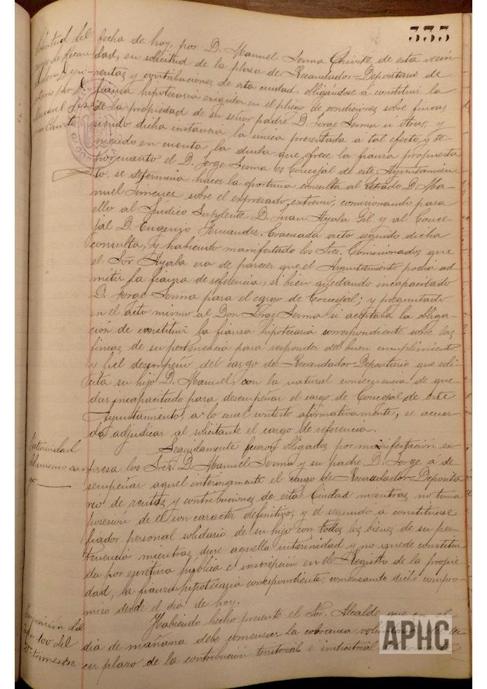 Vista la única solicitud presentada por Manuel Sesma Chivite, para la plaza de Recaudador-Depositario, comprometiéndose a constituir la fianza hipotecaria exigida, con fincas de propiedad de su padre Jorge Sesma, que a su vez es Concejal del Ayuntamiento, y emitidas las oportunas consideraciones por el Concejal Síndico, se indica no hay problema alguno de dicha fianza, siempre que por Jorge Sesma se acepte dicha carga hipotecaria y su renuncia al cargo de Concejal, aceptando ambas condiciones y por tanto se nombra para el cargo de Recaudador-Depositario interino a Manuel Sesma Chivite.