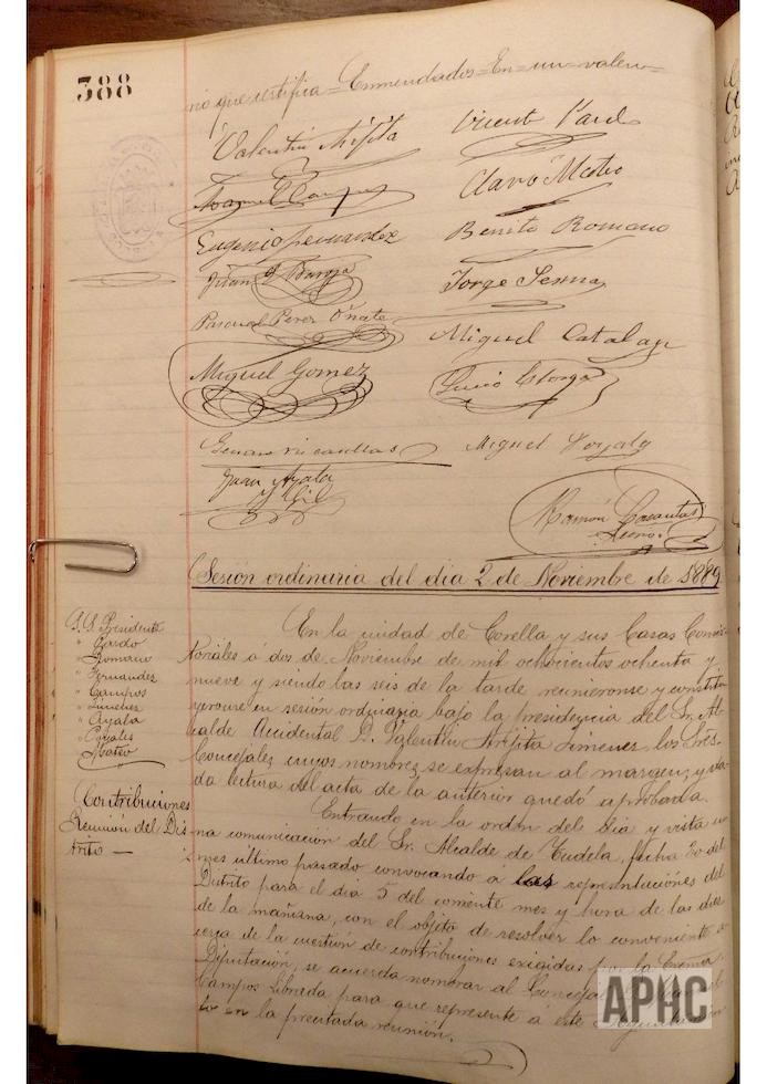 1889-11-02 – Reunidos Ayuntamiento, Veintena y Mayores Contribuyentes