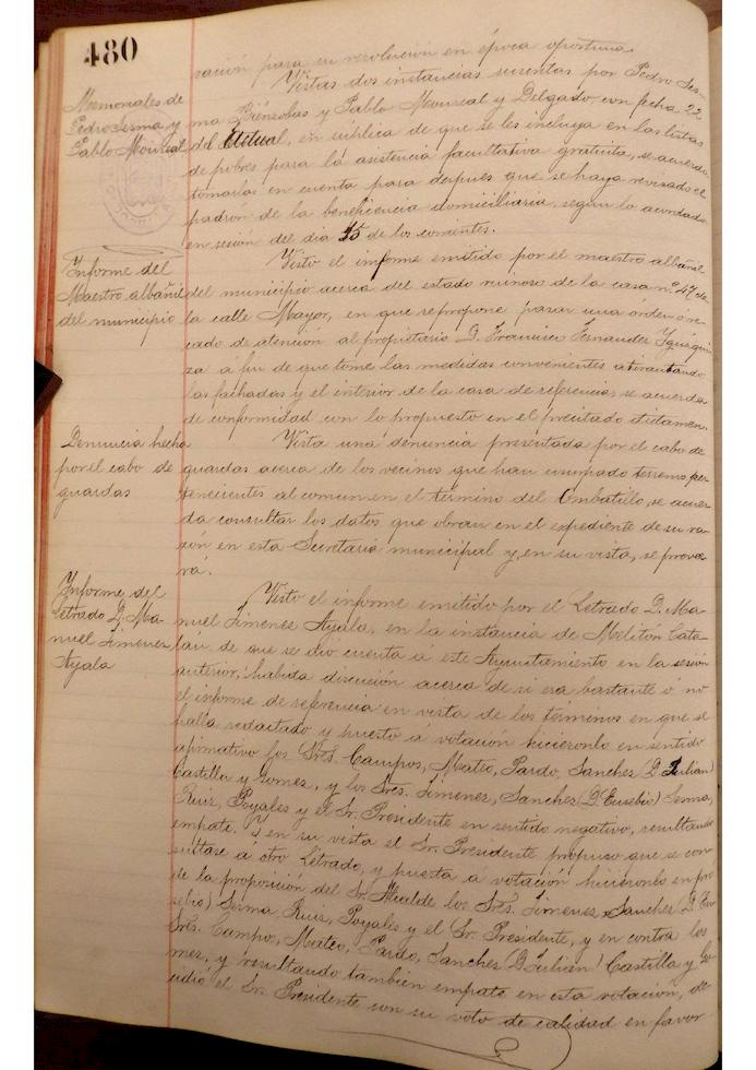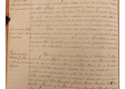 Se informa de la liquidación practicada en la Secretaría sobre la cantidad a que ascendía la deuda ocasionada por el que fue Depositario Teodoro Fuertes Moreno ascendiendo la misma a la cantidad 38.352,55 pesetas, debiendo descontarse de esta cantidad, lo que se recaude de los atrasos de contribuciones, que asciende a 7.000 pesetas aproximadamente. – Visto el informe del maestro albañil municipal, sobre la casa número 47 de la calle Mayor, propiedad de Francisco Fernández Igúzquiza, se acuerda requerirle tome las medidas indicadas en dicho informa municipal, respecto a fachada e interior de dicha casa. En sesión posterior, se fija el plazo de 2 meses, para que realice dichas obras.