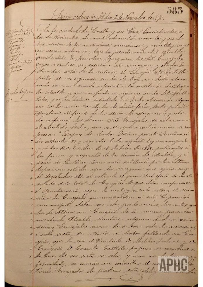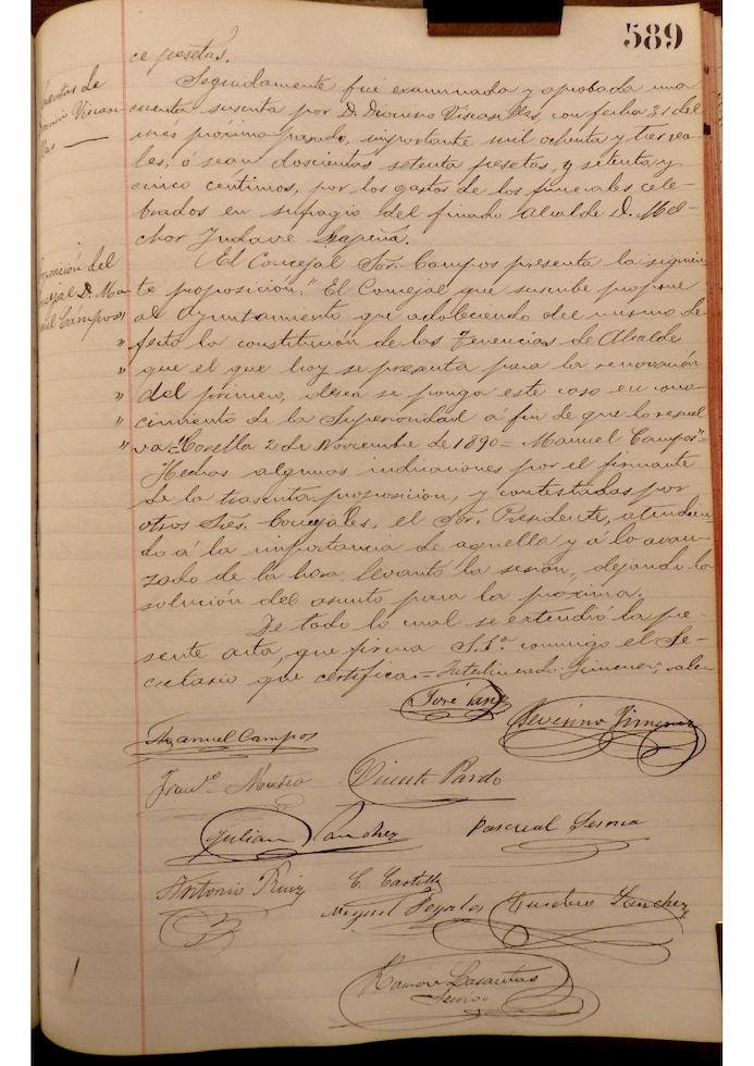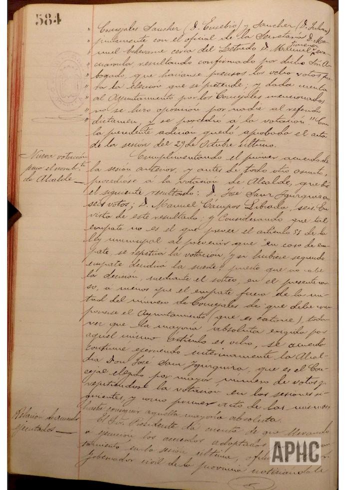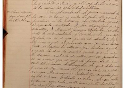 Se realizan varias votaciones para elección de Alcalde, no llegando a conclusión definitiva pues no se alcanza, por ningún concejal la mayoría necesaria de 7 votos. Se autoriza a Justo Arigita la extracción de piedra del Cabezo del Cuco, por un plazo máximo de dos meses, para obra que proyecta en su finca en la Condamina. Se prohíbe la circulación de carros y carruajes, por el Camino Bajo del Villar, con excepción de los necesarios para servicio de las fincas de dicho término, por considerarse un paseo público, por el que transitan numerosas personas para visitar el Santuario. Se informa de solicitud de Vicente Moreno, para que se le rebaje el capital imponible del Catastro, por el acopio de nieve que hace en su nevera; se acuerda someter la decisión a la Junta de Catastro.