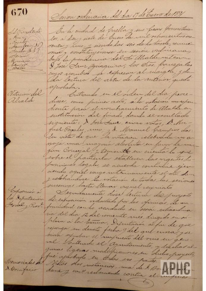 1891-01-17 – (Cese de Concejales y locales para Elecciones Municipales).