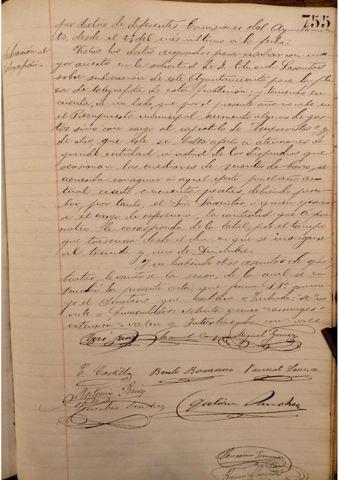 1891-05-30 – (Matrimonio Secretario. Subvención al Telegrafista).