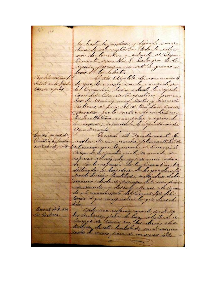 Atendiendo información de la Comisión de Festejos, se acuerda destinar 500 pesetas del Presupuesto municipal del siguiente modo: 100 pesetas para fuegos artificiales y 400 para adquirir dos reses para correrlas por las calles, según la tradicional costumbre. En agradecimiento del Ayuntamiento a su labor, se acuerda la cesión gratuita del edificio destinado a casa-cuartel de la Guardia Civil, de esta Ciudad, renunciando al alquiler que se venía cobrando hasta ahora.