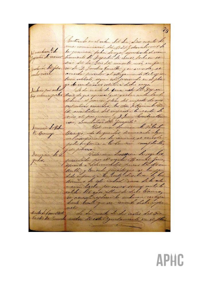 Se informa de aprobación, por parte del Gobernador, del nombramiento como inspector de carnes de este municipio, de Faustino Torralba. Previa petición, se determinan disposiciones sobre el pago del impuesto de ocupación de sitios públicos. Presentan escritos de dimisión al cargo de concejales, Miguel Gómez Zabal, Antonio Ruiz Miranda y Silvestre Fernández Monreal; los dos primeros por haber participado en el arriendo de venta de aguardiente al por menor y el último por motivos de edad; se acuerda remitir a la Superioridad, a los efectos oportunos. Se hace referencia al auto judicial sobre las fincas donadas en testamento de fecha 6 de Marzo de 1886, otorgado en Nueva Orleans, por Justo García León, en favor del Hospital Municipal, y las observaciones y actuaciones con referencia a la viuda de Justo García León, Juana Brisolasa, domiciliada en Nueva Orleans, a través de su cuñado Manuel García Luzuriaga, vecino de Corella. Previa petición, se concede licencia de un mes al Sr. Alcalde, para ocuparse de diversos asuntos y de su salud.