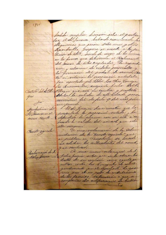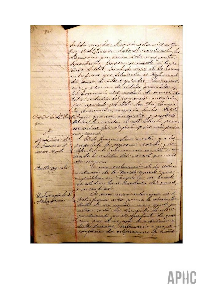 Vista la reclamación de Alguaciles y Serenos, sobre su rebaja de sueldo, se acuerda dejar sin efecto dicha rebaja, teniendo presente que, de conformidad con el Reglamento del Servicio, será de cuenta de los mismos, la expedición y cobranza de las cédulas personales y la formación del padrón de vecinos. Se acuerda que el paño adquirido el año anterior para los Serenos, se destine a dicho efecto.
