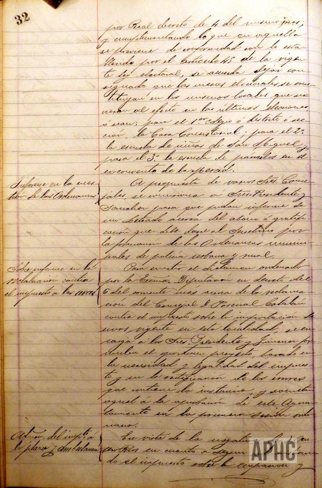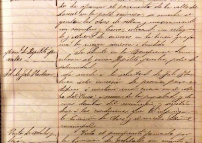 De conformidad con las disposiciones y para las próximas elecciones, se acuerda dejar asignadas las mesas electorales, siendo para el primer colegio o distrito la Casa Consistorial, para el 2º la Escuela de Niñas de San Miguel y para el 3º la Escuela de Párvulos en el ex convento de la Merced. Previa solicitud, se concede permiso a Galo Ibarbuen, para construir una cueva en el Cabezo del “Cuco”, sujetándose a las indicaciones de la Comisión de Obras. Se encarga a la Comisión de Obras, un estudio sobre el arreglo de las calles por donde transcurre la procesión del Viernes Santo.