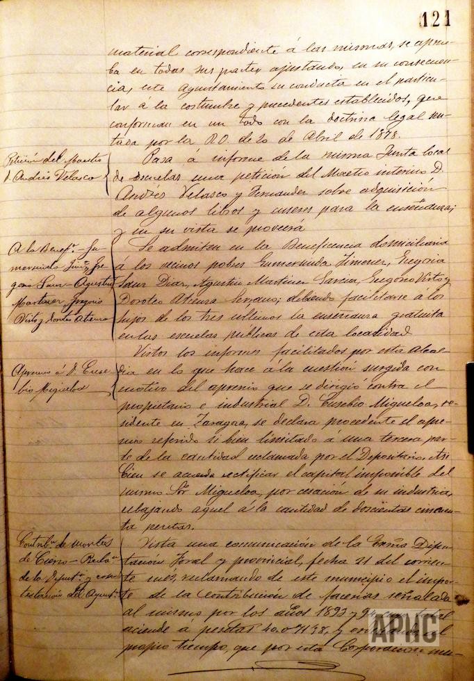 Para acompañar a los Quintos a Pamplona al juicio de exenciones, se comisiona a Eusebio Fernández Francés, dependiente de este Municipio. Se informa de imposibilidad de contratar a la charanga de música, por haberse disuelto. Parece que es la que dirige Isidro Gil, pues continúa la de Telesforo Salcedo.