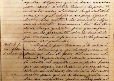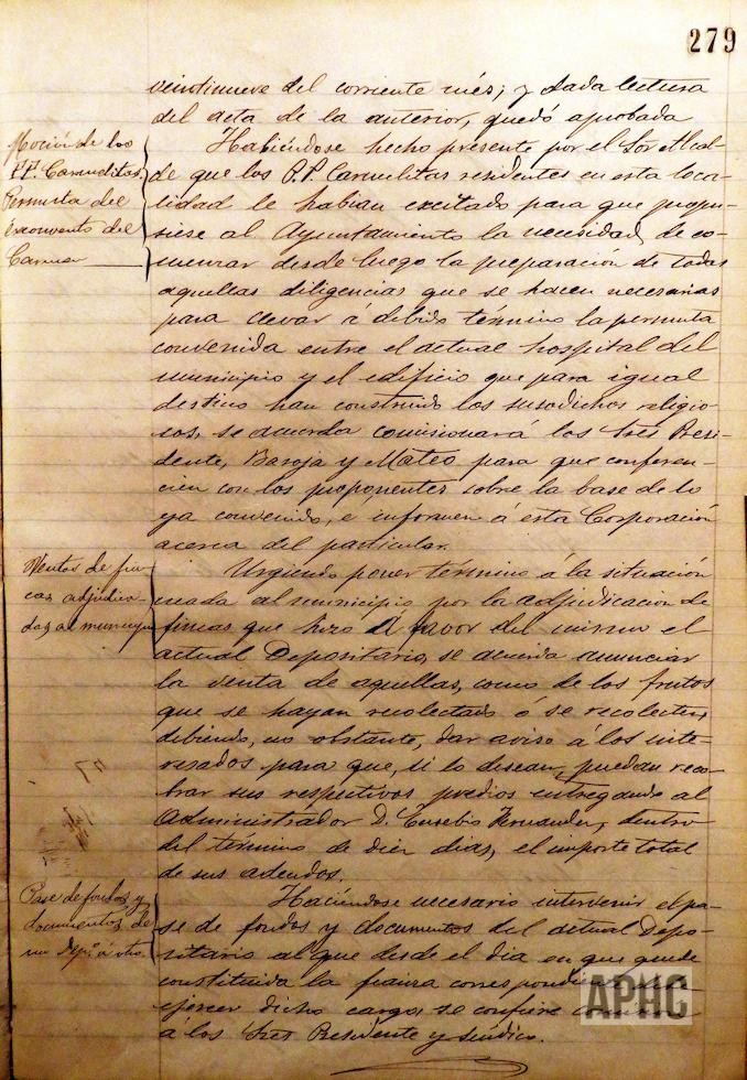 Ante la solicitud de los PP. Carmelitas, se comisiona a los señores Presidente, Baroja y Mateo, para realizar las gestiones oportunas conducentes al intercambio a realizar entre el ex convento de El Carmen y el nuevo edificio dedicado a Hospital Municipal.