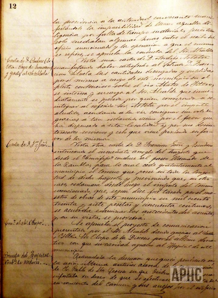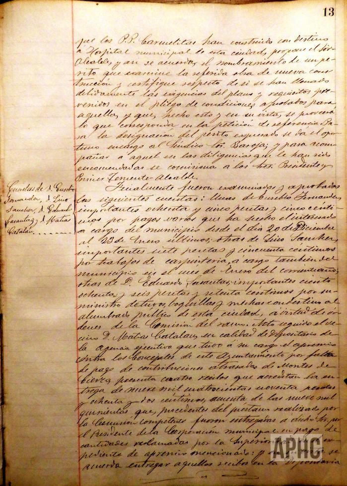 Respecto a la solicitud de Fray Pablo de Santa Teresa, Provincial de los Carmelitas Descalzos de la de San Joaquín de Navarra, sobre la permuta de los terrenos del Carmen, con el nuevo edificio destinado a Hospital Municipal, se acuerda el nombramiento de un perito que examine el nuevo edificio y certifique si se han cumplido en el edificio los requisitos prevenidos en el pliego de condiciones y de ser favorable se proveerá lo que corresponda y para designación de dicho perito, se encomienda al Concejal Síndico Sr. Baroja y para acompañarle en las diligencias encomendadas se designa a los Sres. Alcalde y primer Teniente-Alcalde.