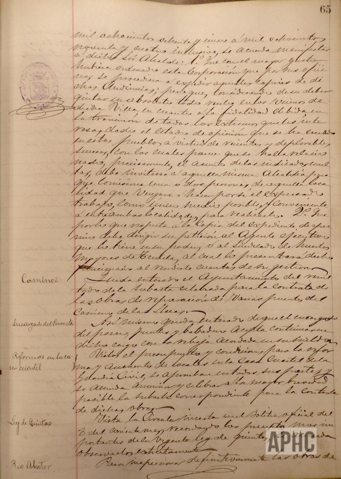 Vista la petición de copia de las audiencias celebradas en El Villar, comprendidas entre los años 1885 a 1894, se le indica, por las consideraciones recogidas en acta, que puede remitir dos personas de dicha Localidad a este Ayuntamiento, para que realicen dicho trabajo.