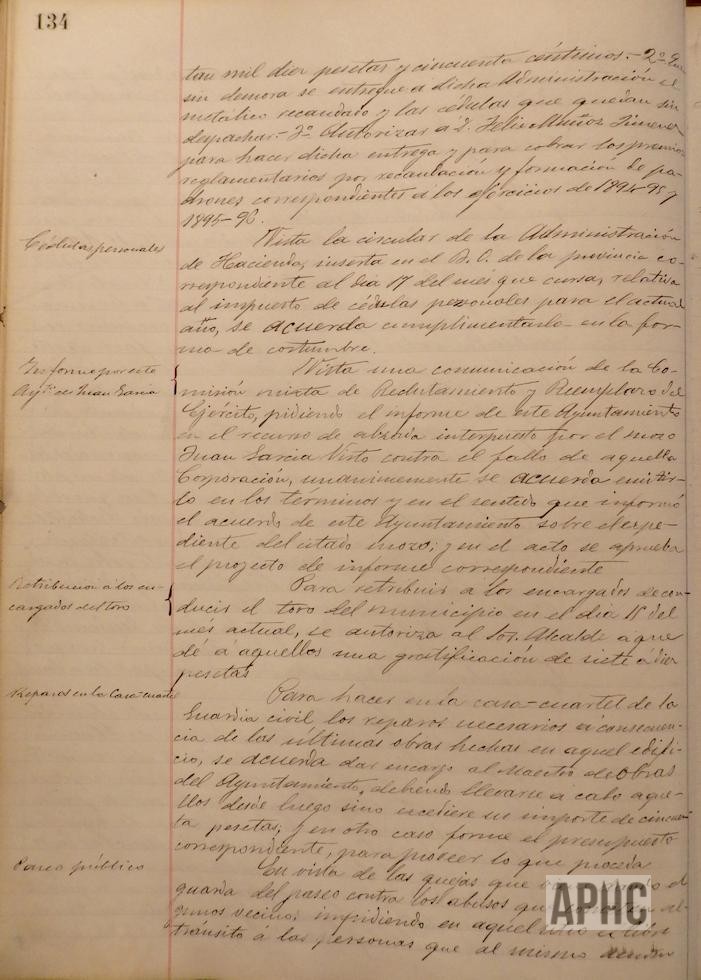 Se acuerda la dimisión colectiva de todos los miembros del Ayuntamiento, ante la exigencia de la superioridad de temas de pagos por recaudación de impuestos, que se consideran excesivos en esta Ciudad, aprobándose dicha comunicación al Gobernador, a través de le Diputación.Se faculta al Sr. Alcalde, para que entrega una cantidad de entre 7 a 10 pesetas, a los conductores del toro del Ayuntamiento, el pasado día 15. Ante las quejas presentadas por el Guarda del Paseo, se prohíbe la entrada en dicho paseo con bicicleta o cualquiera otra clase de máquinas o vehículos, que puedan molestare a los transeúntes o causar daños en los jardines.