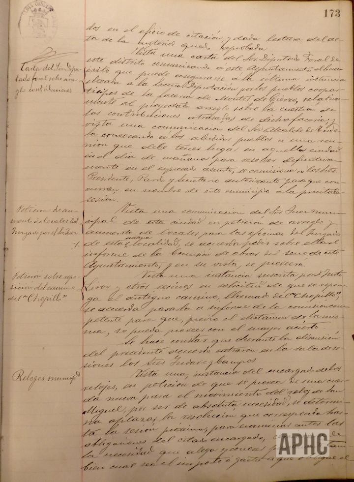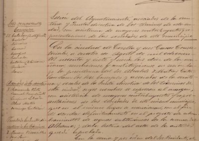 Reunidos Ayuntamiento, Veintena, Junta Directiva de los Términos, Mayores Contribuyentes y representación de Sociedades del Municipio, se trató y se acordaron varias disposiciones sobre el alumbramiento de aguas subterráneas en el cauce del río Alhama, según proyecto del ingeniero Sr. Montenegro.