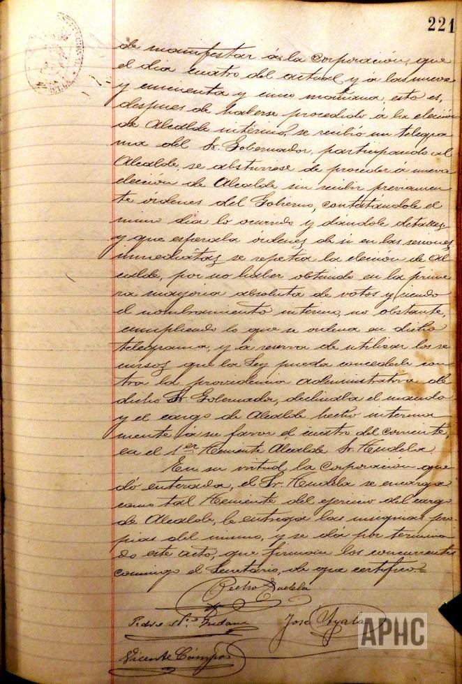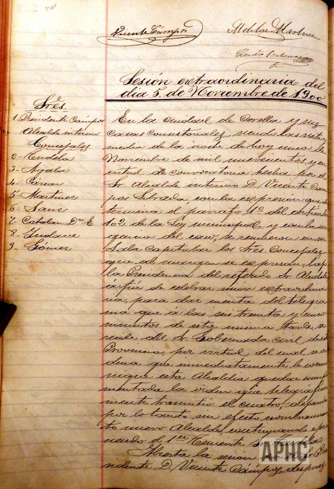 Se informa de telegrama del Gobernador, ordenando continuidad de Alcalde al primer teniente de Alcalde Sr. Tudela y se procede al cese del Alcalde interino Sr. Campos.