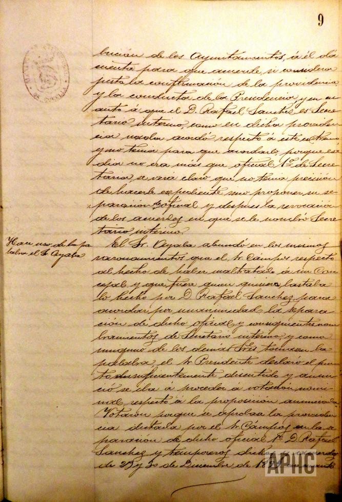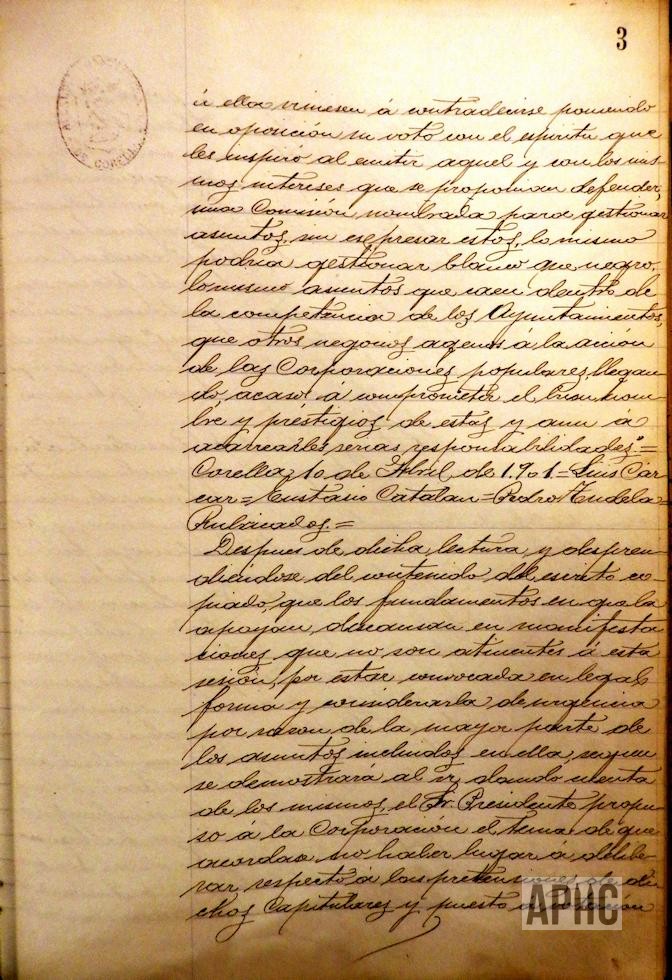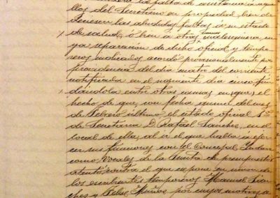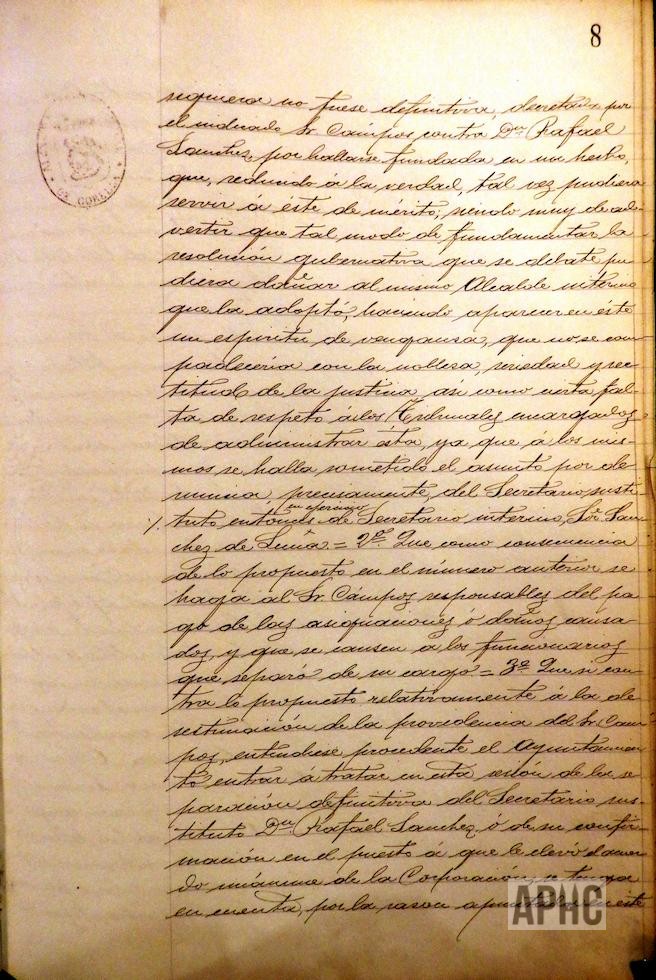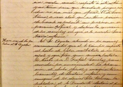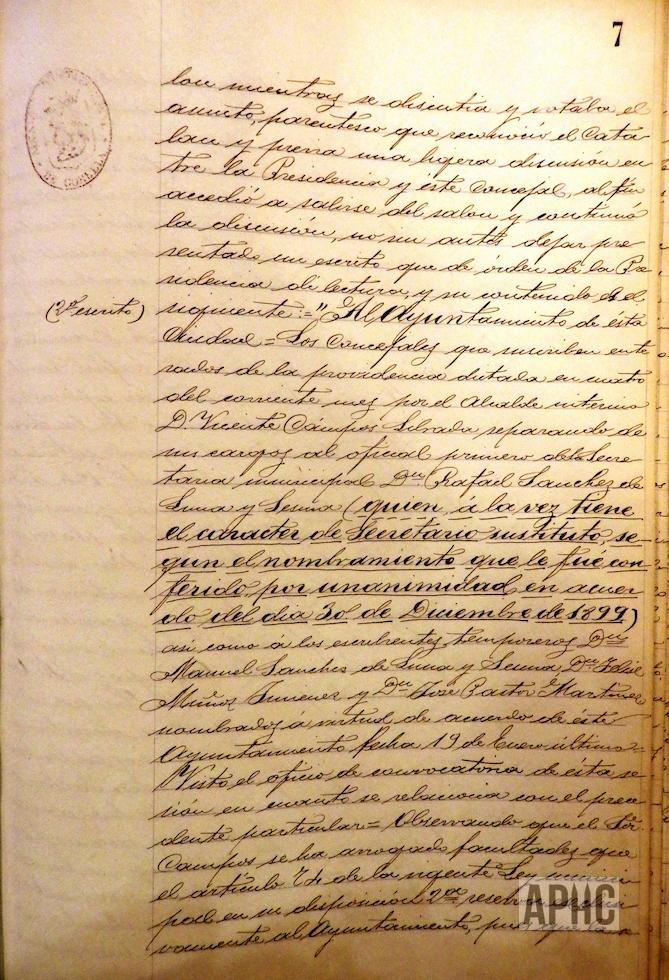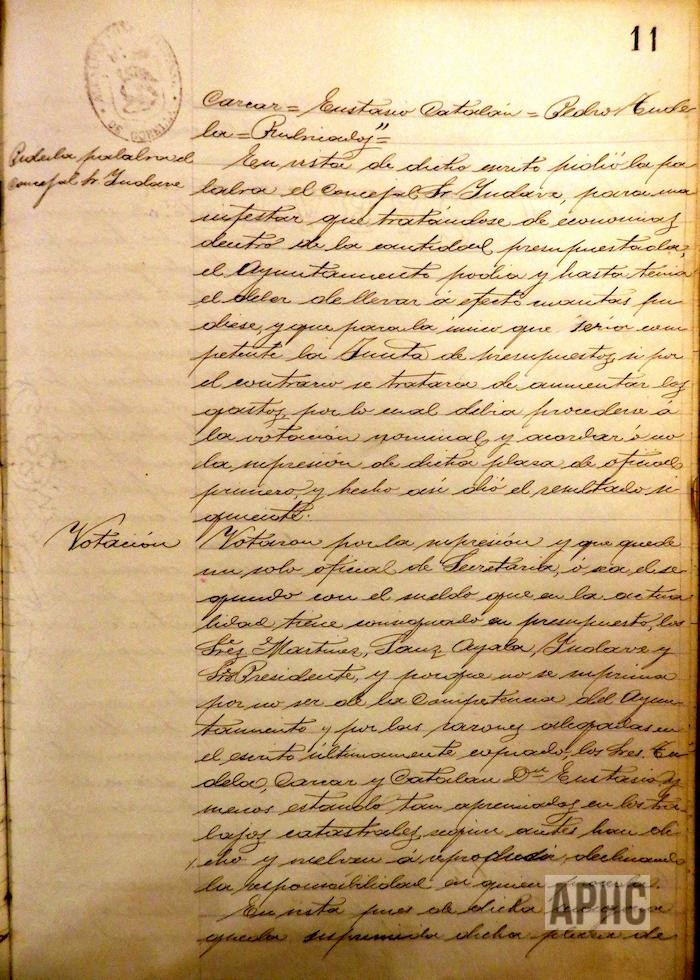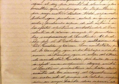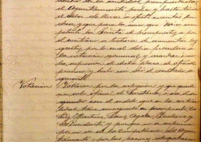 Por los hechos expresados en acta, se realiza la toma de posesión como Alcalde interino por parte del Concejal Vicente Campos Librada. Asimismo y a propuesta del Alcalde Sr. Campos, mediante la oportuna votación y por mayoría de votos, se acuerda la separación definitiva de Rafael Sánchez de Luna Sesma, como oficial 1º de Secretaría y Secretario sustituto, y de los escribientes temporeros Manuel Sánchez de Luna Sesma, Félix Muñoz Jiménez y José Pastor Martínez. Asimismo y a propuesta del Alcalde Sr. Campos, mediante la oportuna votación y por mayoría de votos, se acuerda la separación definitiva de Rafael Sánchez de Luna Sesma, como oficial 1º de Secretaría y Secretario sustituto, y de los escribientes temporeros Manuel Sánchez de Luna Sesma, Félix Muñoz Jiménez y José Pastor Martínez.