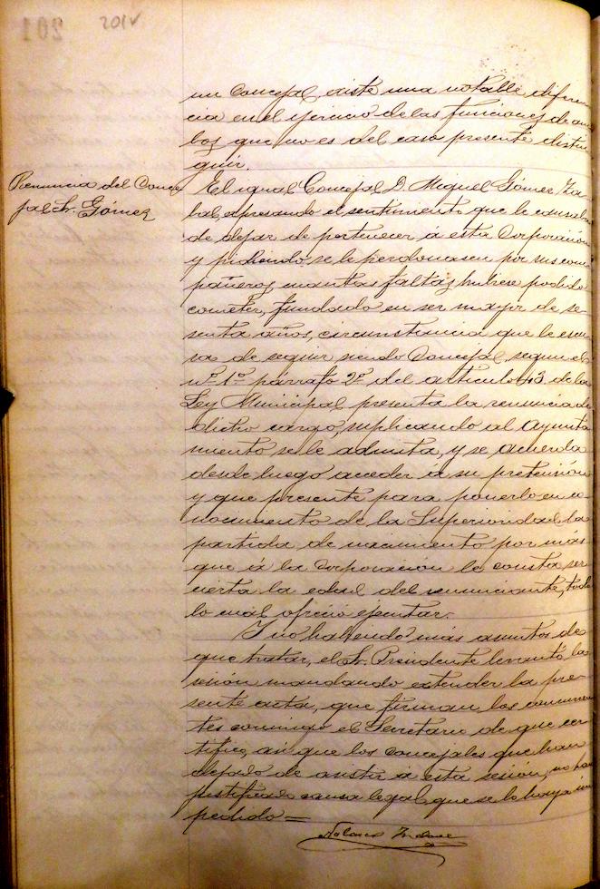 Se admite la renuncia al cargo de Concejal, presentada por Miguel Gómez Zábal, fundamentada en ser mayor de 60 años.