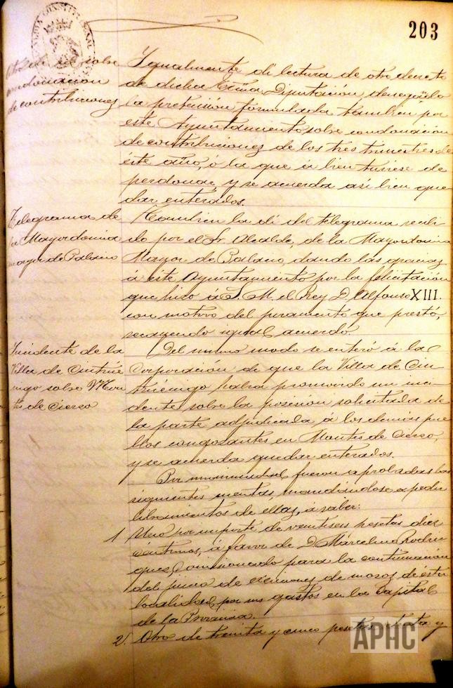 Se informa de telegrama recibido de la Mayordomía Mayor de Palacio, dando gracias a este Ayuntamiento, por la felicitación cursada al Rey Alfonso XIII, con motivo del Juramento que prestó en reciente fecha.