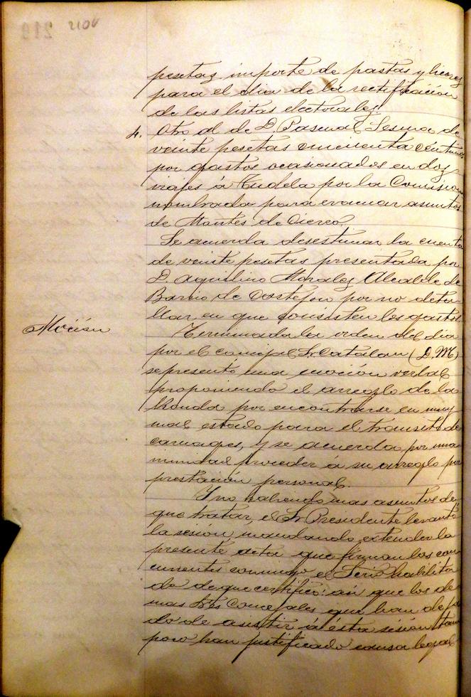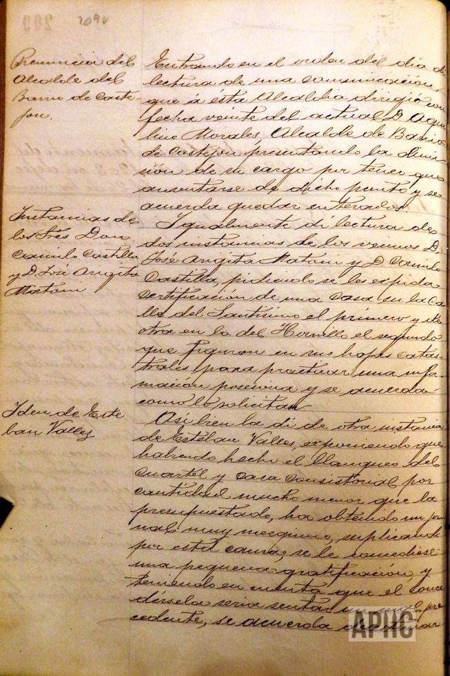 Se admite la renuncia presentada por Aquilino Morales, de su cargo de alcalde de Barrio, del de Castejón, por tener que ausentarse del mismo.