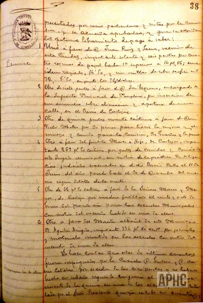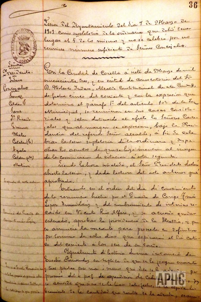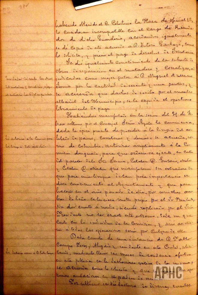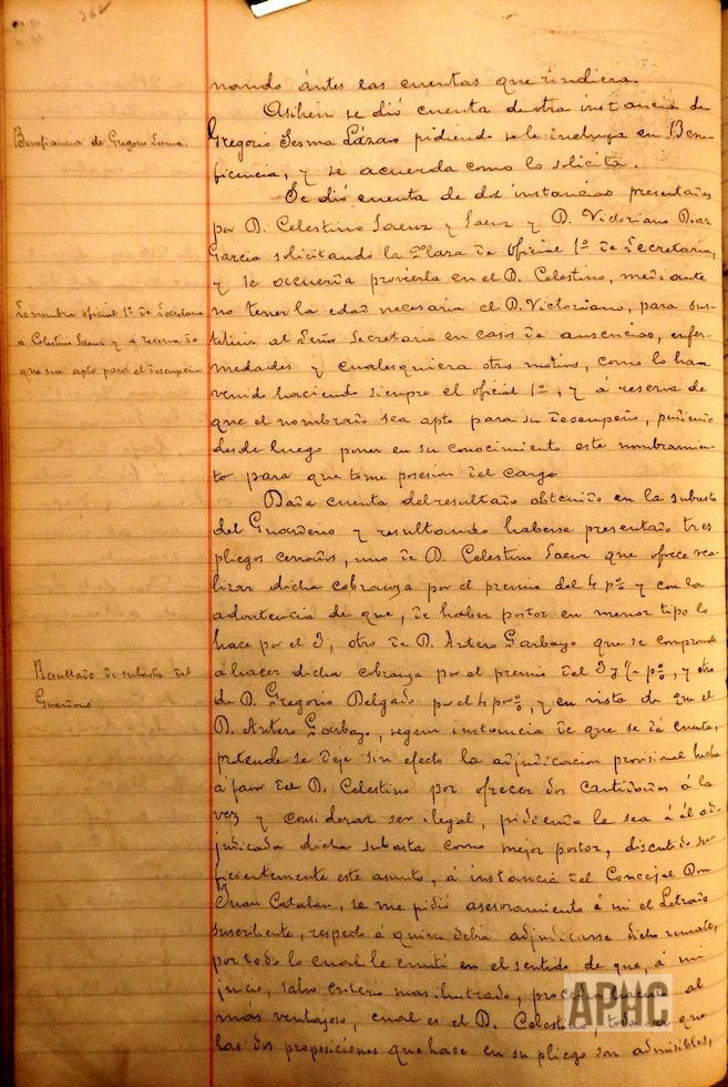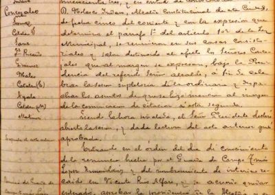 Se admite la renuncia al cargo de Guarda de Campo de Tomás López Armendáriz y se nombra, para este mismo cargo, a Vicente Ríos Alfaro. Se nombra Oficial 1º de Secretaría a Celestino Sáenz Sáenz.