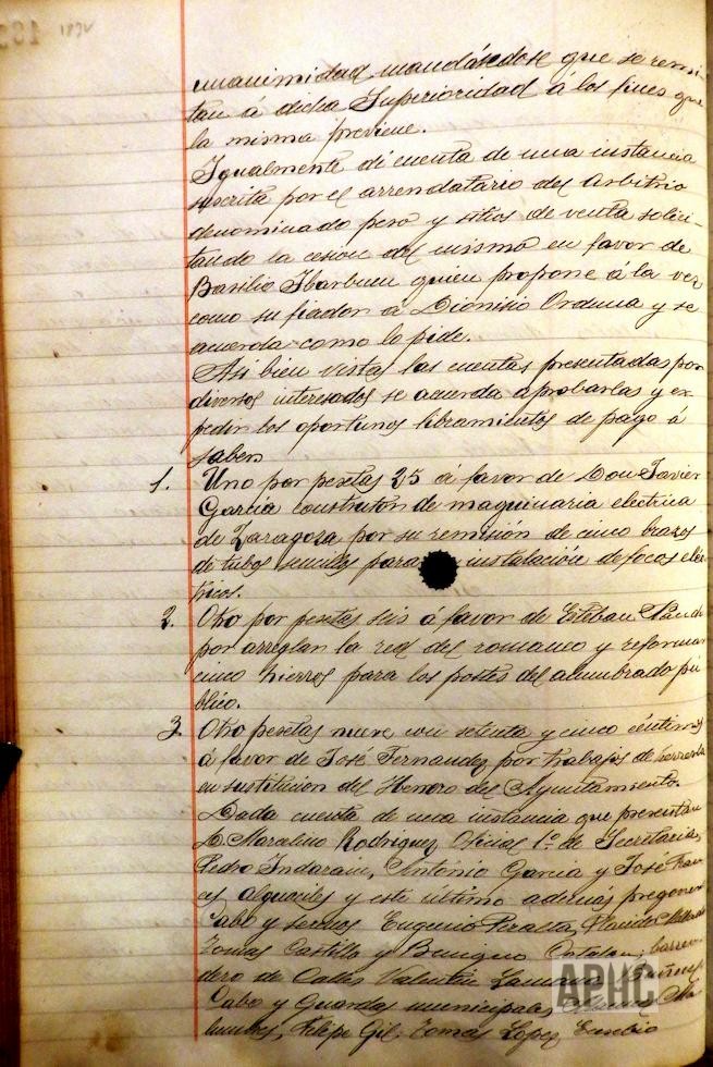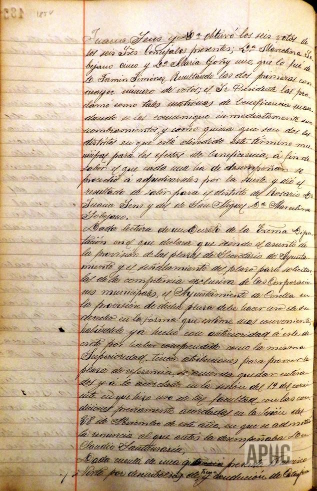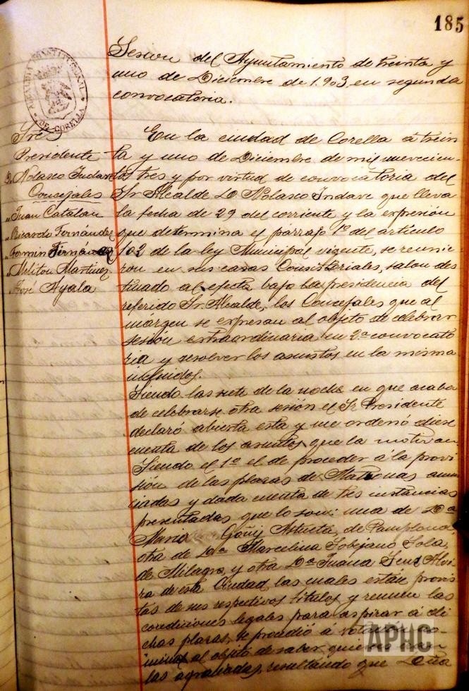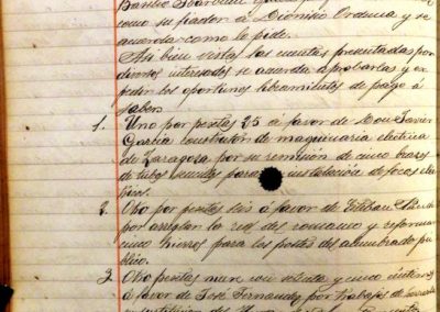 Con esta fecha se celebran dos sesiones consecutivas. Abono a Javier García, de Zaragoza, por compra de 5 brazos para instalación de focos eléctricos. Por razones que no se indican en acta, presentan dimisión de sus cargos, un oficial de Secretaría, Alguaciles, Pregonero, Serenos, Barrendero de calles y Guardas y se les indican continúen en sus cargos hasta la toma de posesión del nuevo Ayuntamiento. Se acuerda redactar escrito sobre la falta de asistencia de Concejales a las distintas sesiones celebradas y ponerlo en conocimiento del Gobernador. Se nombran Matronas a Juana Sens Alvira, para el distrito del Rosario y a Marcelina Sobejano Sola para el de San Miguel.