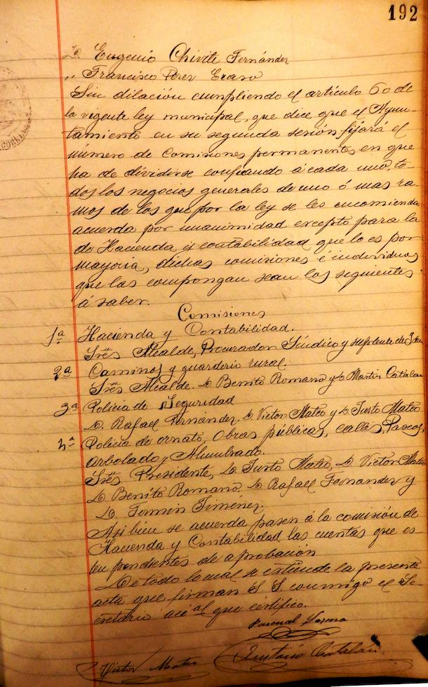 Se informa de los nombramientos de alcalde de barrio, realizados por el Alcalde y que son los siguientes: Distrito 1º, Lucio Sáenz Sáenz, Pedro Mateo Jiménez, Miguel Hernández Rodríguez, Jorge Sesma Romeo, José Sesma Planillo, Marcos Escribano Martínez y José González Guillorme (Castejón); 2º Distrito, Eusebio Catalán Ormazábal (Reelegido), Ciriaco Catalán Sanz, Antero Garbayo Pastor, Justo Virto Sanz, Sinforiano Jiménez Jiménez (Reelegido); Distrito 3º, Francisco Olloqui Rodríguez, Lorenzo Catalán Fernández, Eugenio Chivite Fernández y Francisco Pérez Eraso. Se procedió al nombramiento de miembros de las distintas comisiones municipales que son las de Hacienda y Contabilidad, Caminos y Guarderío Rural; Policía de Seguridad; Policía de Ornato, Obras Públicas, Calles, Paseos, Arbolado y Alumbrado.