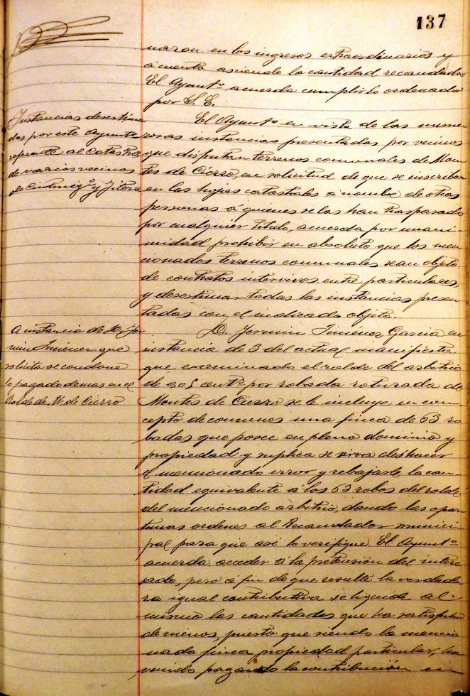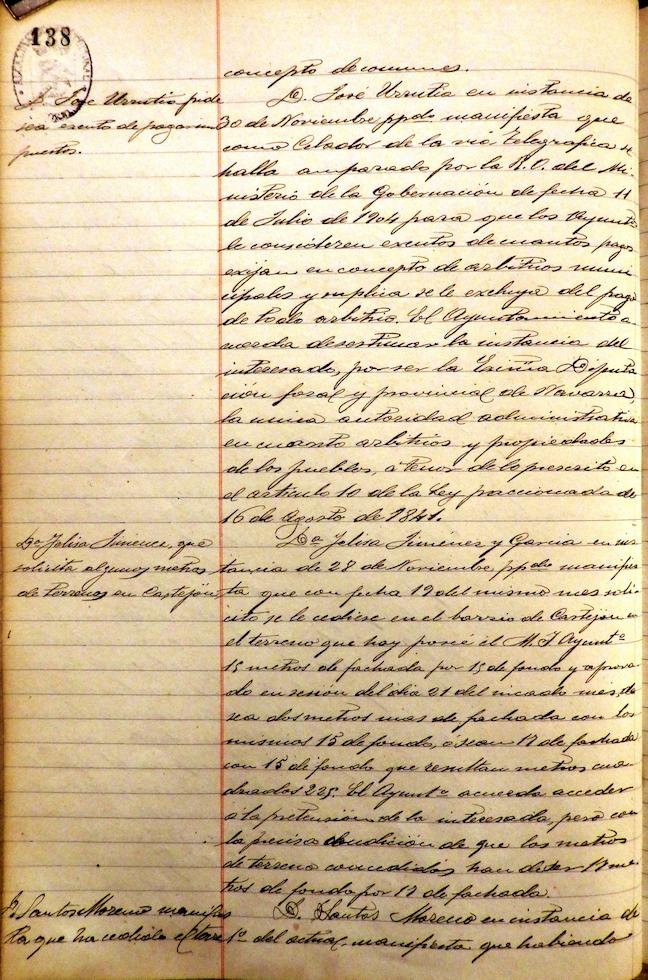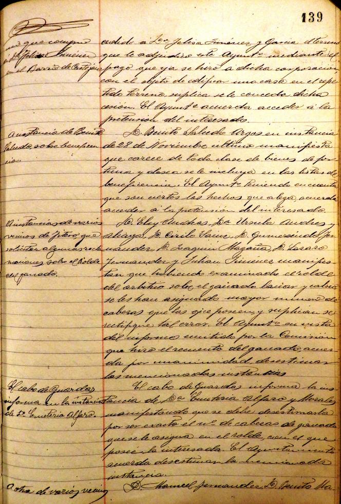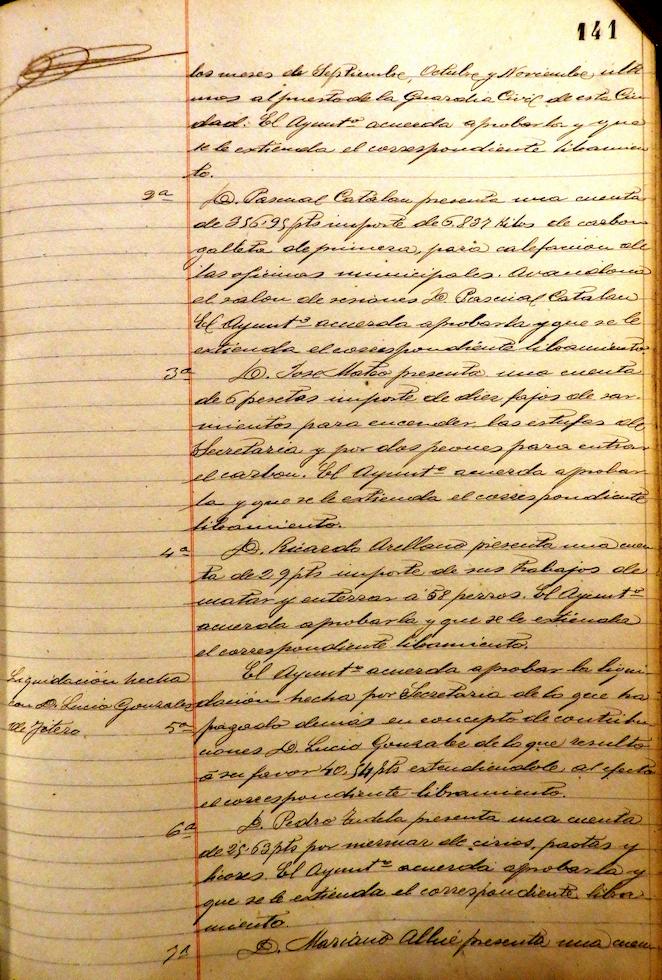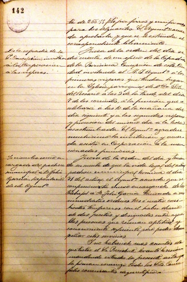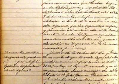 Entre otros asuntos, se acuerda la confección de un nuevo Padrón de habitantes, encargando dichos trabajos a Félix García, poniendo a su disposición tras o cuatro escribientes temporeros.