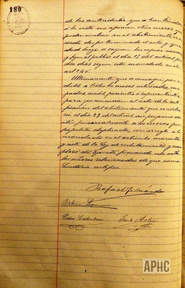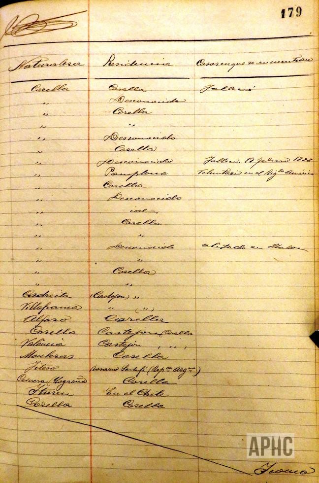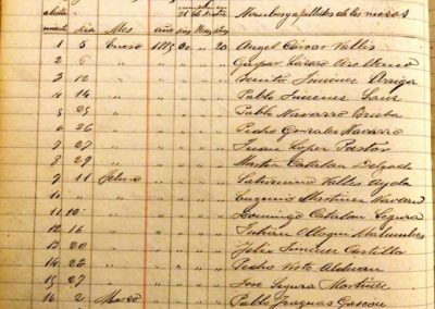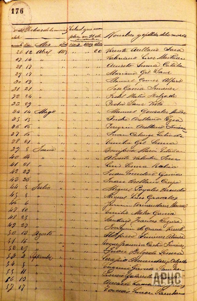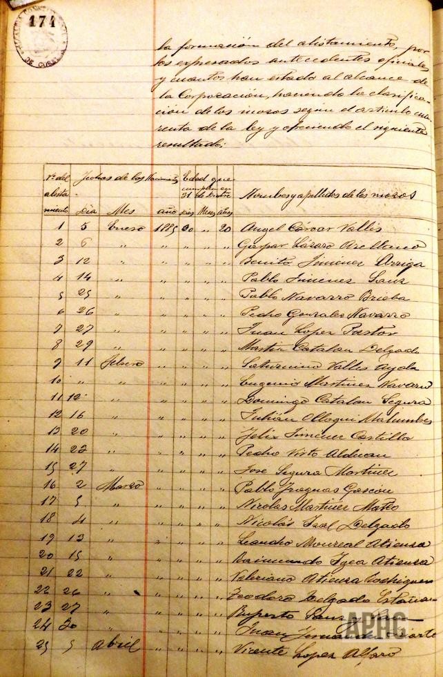De conformidad con las disposiciones vigentes sobre alistamiento de mozos de esa Ciudad, se realiza la formación de una relación que en Acta de la rectificación definitiva y cierre del alistamiento, en sesión del 11 de Febrero, queda del siguiente modo: