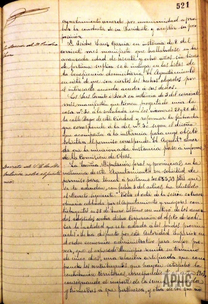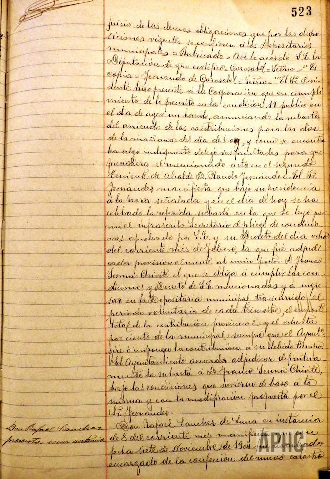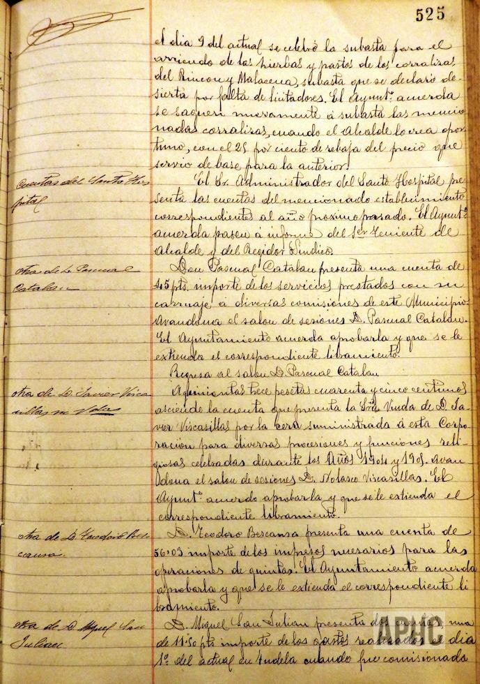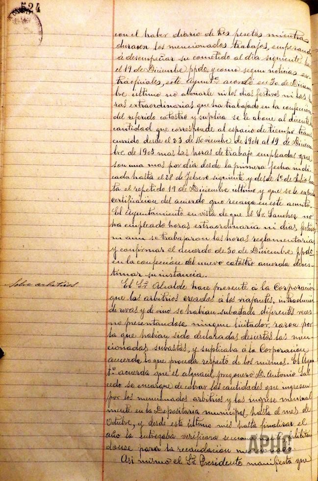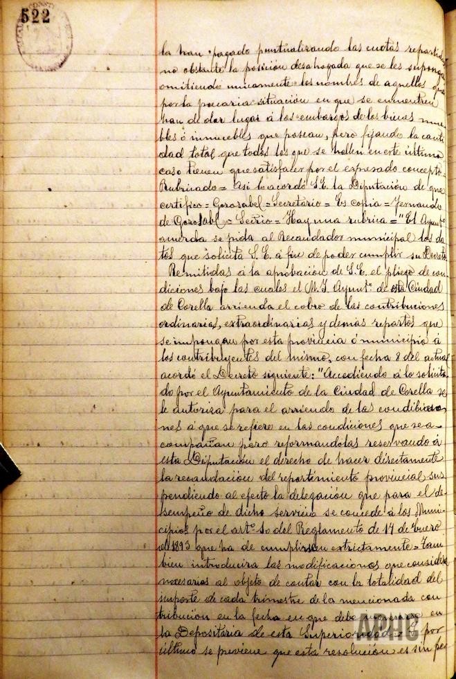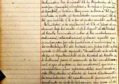 Se informa de la subasta celebrada y la adjudicación del cargo de Recaudador de Contribuciones y Arbitrios al único postor presentado, Franco Sesma Chivite. Se acuerda la devolución de la cantidad reintegrada por la Diputación, a los propietarios de viñas que abonaron para combatir la filoxera. Se indica que abonaron en su día 10 céntimos por robada y que ahora se les devolverán 9 céntimos por robada, una vez deducidos ciertos gastos ocasionados.