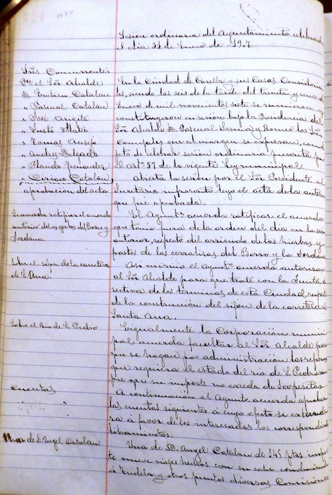 Se faculta al Alcalde la reforma necesaria del río de San Pedro, siempre que los gastos no excedan de 100 pesetas. (Entiendo se refiere al río para riego, situado en la calle de San Pedro).