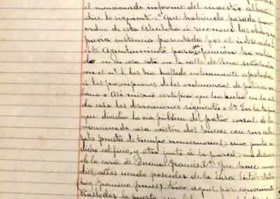Se trata sobre informe del maestro Albañil José García sobre medianería y casa de la calle de la Rúa número 1, solicitado por Francisco Funes y donde se recoge declaración verbal de Lucio Moreno que habitó en dicha casa, actualmente derruida.