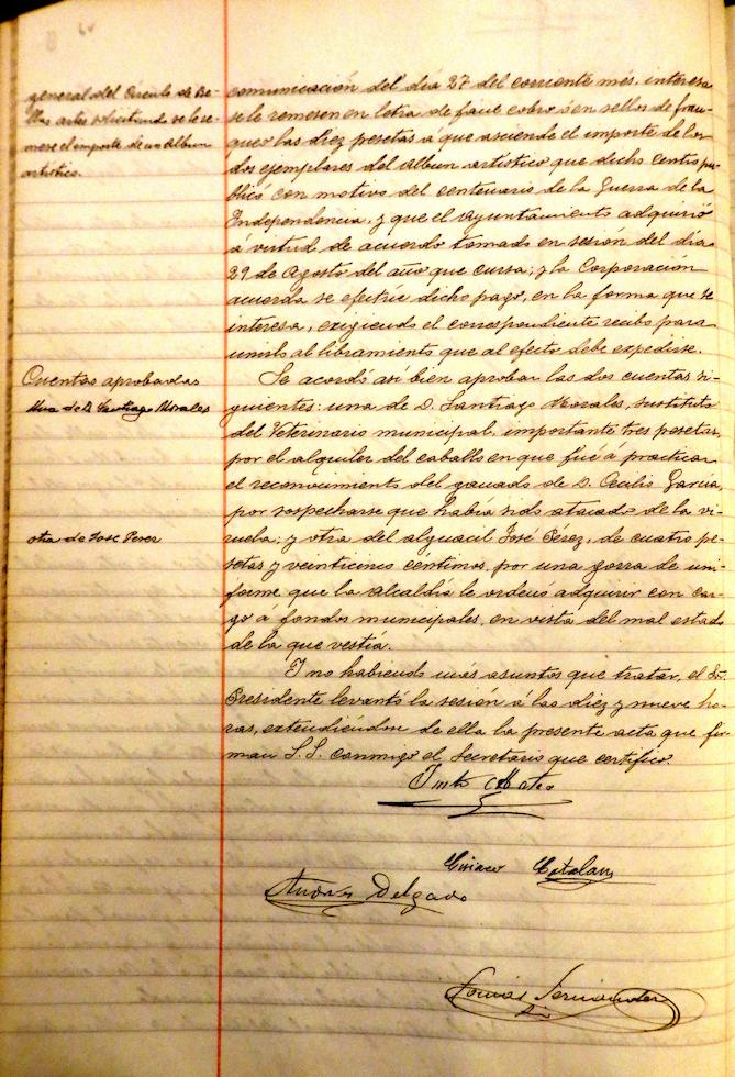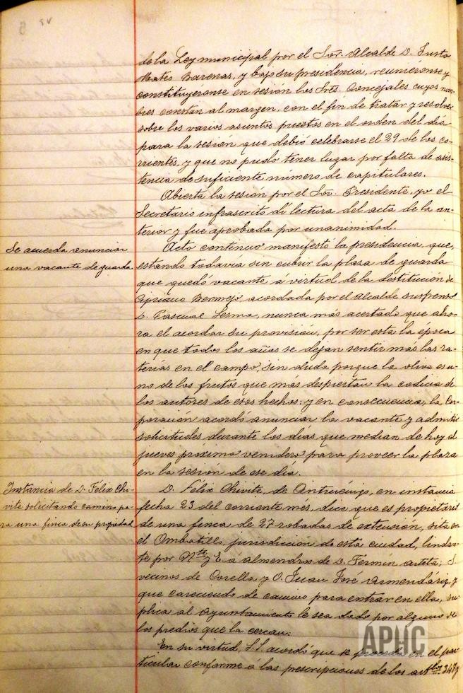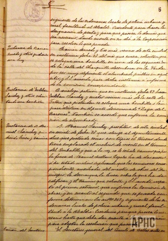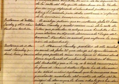 Vista la solicitud del presbítero Manuel Sánchez, en solicitud de camino para el terreno de su propiedad en el término del Ombatillo donde tiene instalado un molino de viento, se acuerda pase a informe de la comisión correspondiente. En sesión de fecha 28 de Noviembre, Manuel Sánchez, solicita que esta solicitud sea desestimada, renunciando a lo solicitado. la destitución de Cipriano Bermejo
