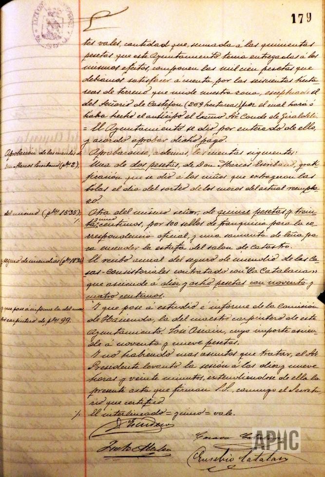Se deja constancia y se aprueba una entrega por un importe total de 1.100 pesetas, como anticipo para gastos de estudio del Canal Victoria-Alfonso (de Lodosa), a razón de 2 pesetas por hectárea regable.