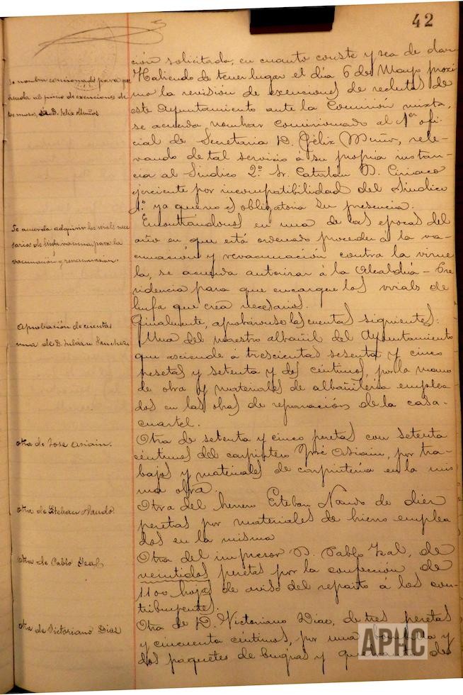 Ante solicitud de Vicente Moreno Aliaga, para que se le adjudique la contrata de suministro de nieve al vecindario durante el verano próximo y al no existir partida presupuestaria para dicho servicio, ya que son varios los vecinos que importan hielo artificial de las fábricas de Zaragoza y Logroño, facilitando el consumo en inmejorables condiciones de economía, se acuerda que dicha instancia pase a estudio e informe de la Comisión de Hacienda. Entre otras, se aprueba una cuenta del impresor Pablo Izal, por confección de hojas de aviso de las contribuciones.