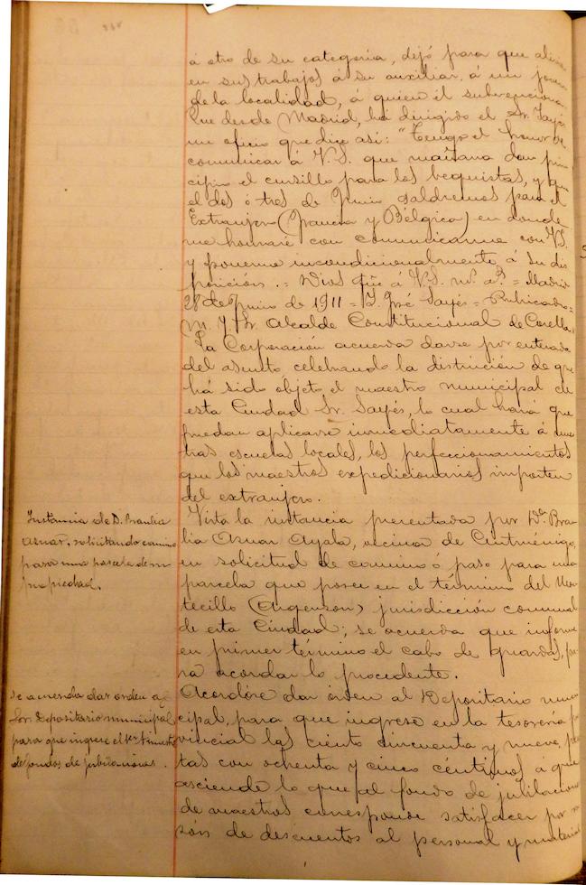 Se autoriza al Maestro del distrito de San Miguel, Isidoro José Sayés Basterrechea, seleccionado por el Ministerio de Instrucción Pública, dentro del grupo de maestros a nivel nacional, para que por un periodo de 3 meses, se desplacen a Francia y Bélgica, para estudiar la organización y funcionamiento de sus escuelas y colonias escolares.