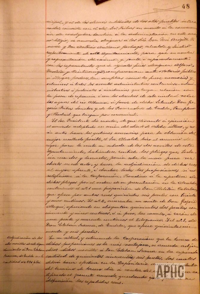Se deja constancia de la subasta celebrada para la venta de los dos novillos del Ayuntamiento, adjudicándose a Esteban Frauca, de Tudela, en la cantidad de 556 pesetas, por su oferta superior a las otras dos presentadas. Se nombra Guardas Municipales a José Moreno Marcilla y José Galarreta Lázaro, por dimisión de Valentín Arellano Crespo y Gregorio Calvo Eraso.