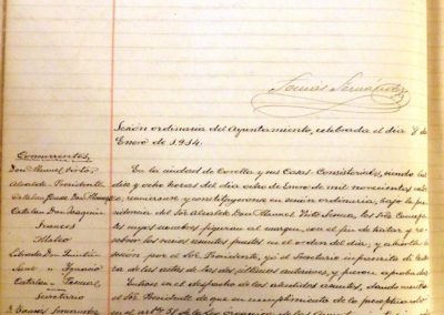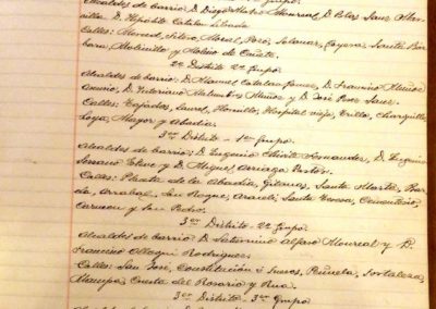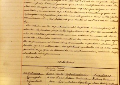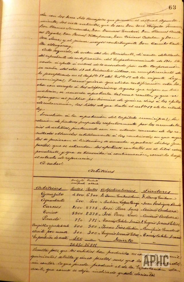 El Alcalde informa del nombramiento de los alcaldes de Barrio que ejercerán a las órdenes de los Tenientes de Alcalde, siendo nombrados los siguientes: – Se procede al nombramiento de Alcaldes de Barrio, siendo nombrados los siguientes: Primer Distrito, Grupo 1º: Eusebio Ríos Martínez y Pedro Mateo Jiménez, y comprende las calles Verdura, Reja, Santísimo, San Francisco, Plaza Baja, Muro, Conejera y Castillo. Grupo 2º: Manuel Sesma Galarreta, José Mª Arbeloa Sola y Estanislao Arnedo Anguiano, y comprende las calles San Juan, Cuesta del Molino, Sol, Baños, Caballeros, San Miguel, Vallejo, Nueva, Cruz, Placeta de García, Cañete y Barranquillo. Grupo 3º: Alcalde, Nicasio Jiménez González y suplente Eulogio Martínez Izquierdo, comprende barrio de Castejón. Segundo Distrito, Grupo 1º: Diego Mateo Monreal, Blas Sanz Marcilla e Hipólito Catalán Librada y comprende las calles Merced, Fitero, Moral, Pozo, Solanar, Goyera, Santa Bárbara, Molinillo y Molino de Cañete. Grupo 2º: Manuel Catalán Gómez, Francisco Muñoz Asensio, Victoriano Malumbres Muñoz y José Pérez Sanz, y comprende las calles: Tajadas, Laurel, Hornillo, Hospital Viejo, Trillo, Charquillo, Loya, Verde, Mayor y Abadía. Tercer Distrito, Grupo 1º: Eugenio Chivite Fernández, Eugenio Serrano Esteve y Miguel Arriaga Pastor, y comprende las calles Placeta de la Abadía, Gitanas, Santa Marta, Barda, Arrabal, San Roque, Araceli, Santa Teresa, Cementerio, Carmen y San Pedro. Grupo 2º: Saturnino Alfaro Monreal y Francisco Olloqui Rodríguez, y comprende las calles San José, Constitución o Fueros, Peñuela, Fortaleza, Mampa, Cuesta del Rosario y Rúa. Grupo 3º: Juan Marcilla Gascón y comprende los despoblados de Cuevas de la Mingarra y de Cañete. Se procedió al nombramiento de miembros de las distintas comisiones municipales que son las de Hacienda y Contabilidad; Caminos y Guardería Rural; Policía de Seguridad; Policía de Ornato y Obras; Sanidad y Beneficencia Domiciliaria y vocales en la Junta de Instrucción Pública. Se procedió a la elección de los miembros que integrarán la Veintena, para el siguiente bienio, que deben ser 21, es decir los 14 miembros de Ayuntamientos más los 7 que últimamente han cesado en dicho cargo. Como está vacante una plaza de concejal, se sortea dicha plaza entre los mayores contribuyentes, siendo elegido Camilo Castilla Alzugaray. Se informa del resultado de adjudicación de los Arbitrios Municipales de Garapito, Aguardiente, Carnes, Tocino, Pescado, Peso Público y puestos de venta, Aceite por menor, y Exportación de Aceite, con detalle de los importes obtenidos, adjudicatarios y fiadores de los mismos.