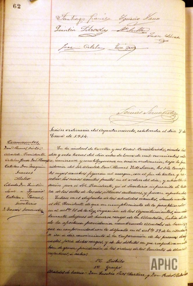 1914-01-08 – (Alcaldes de Barrio. Comisiones Municipales. Junta de Veintena. Arbitrios o Impuestos Municipales).
