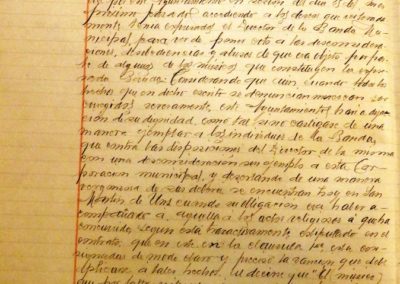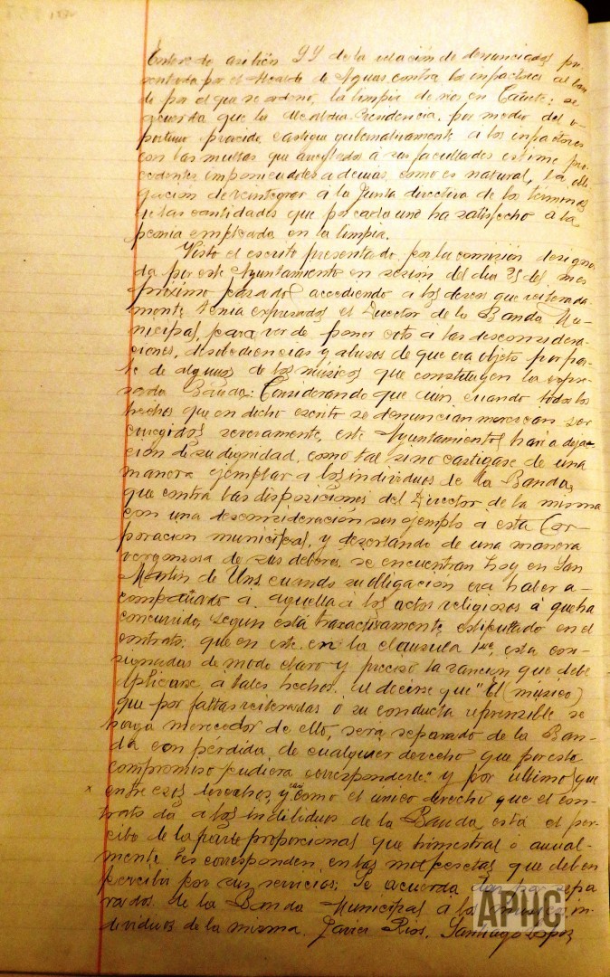 – Por desobediencia al director de la Banda de Música, y no haber concurrido al acto de acompañamiento al Ayuntamiento, como era su obligación, habiéndose marchado a una actuación a San Martín de Unx, se acuerda sancionar con el despido y separación de la Banda Municipal, a los músicos Javier Ríos, Santiago López, Domingo Malumbres, Manuel Malumbres, Ángel Arellano, Juan Cruz García, Casimiro Ibarbuen, José Sesma Guillorme, José María Peralta, Gaspar Gil y Emilio Gil, con privación de los derechos que pudieran corresponderles, por las consideraciones recogidas en dicha resolución.