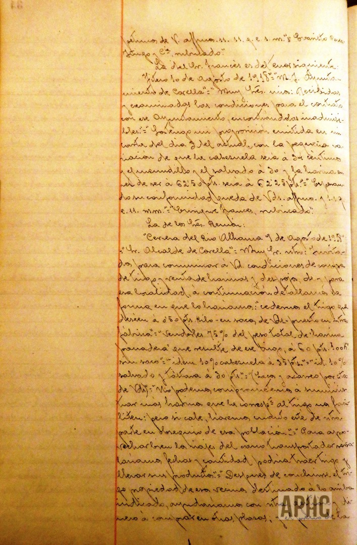 – Recibidas contestaciones de varios fabricantes de harina, se nombra una Comisión para que, de conformidad a los acuerdos adoptados, gestionen la molturación del trigo y fabricación de harina, por el régimen de administración.