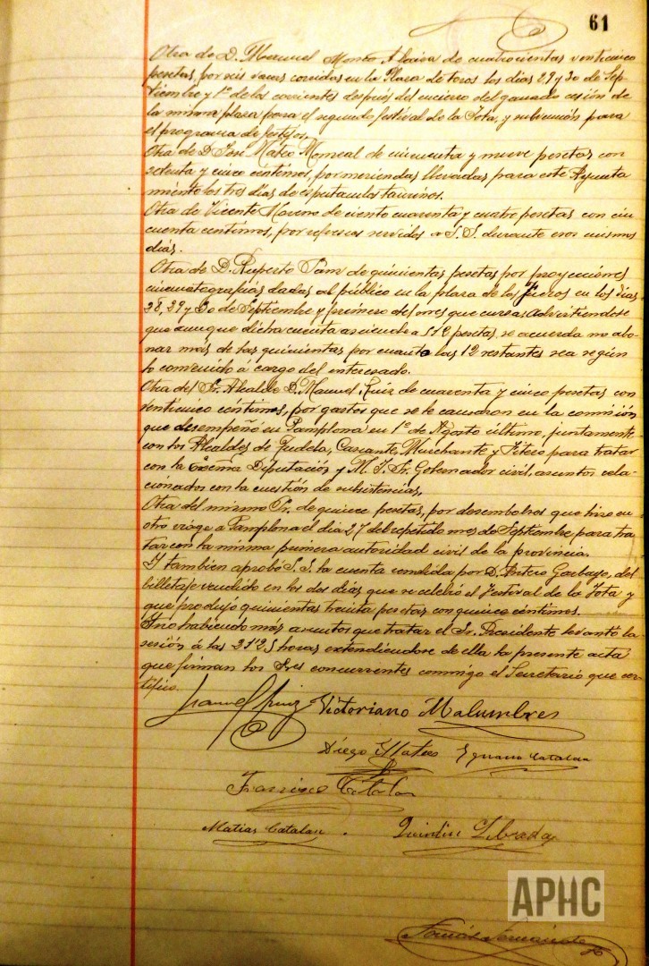 – Entre otras cuentas se aprueba una de Ruperto Sanz de 500 pesetas, por proyecciones cinematográficas dada al público en la Plaza de los Fueros, los días 28, 29 y 30 de Septiembre y 1 de Octubre .