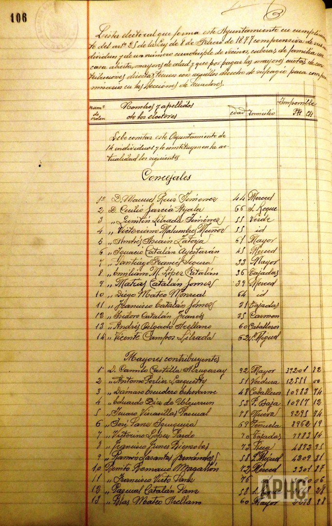 – De conformidad con las disposiciones vigentes, se procede a la formación de las listas de vecinos que pueden elegir compromisarios para elección de Senadores, quedando constituida por los 14 componentes de Ayuntamiento y 56 Mayores contribuyentes. Se acuerda que dichas listas sean expuestas al público y que las reclamaciones oportunas se deben realizar en el Ayuntamiento.