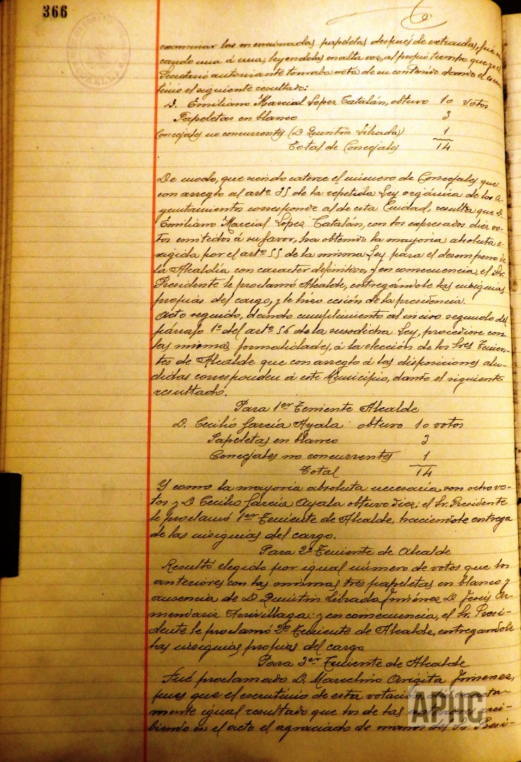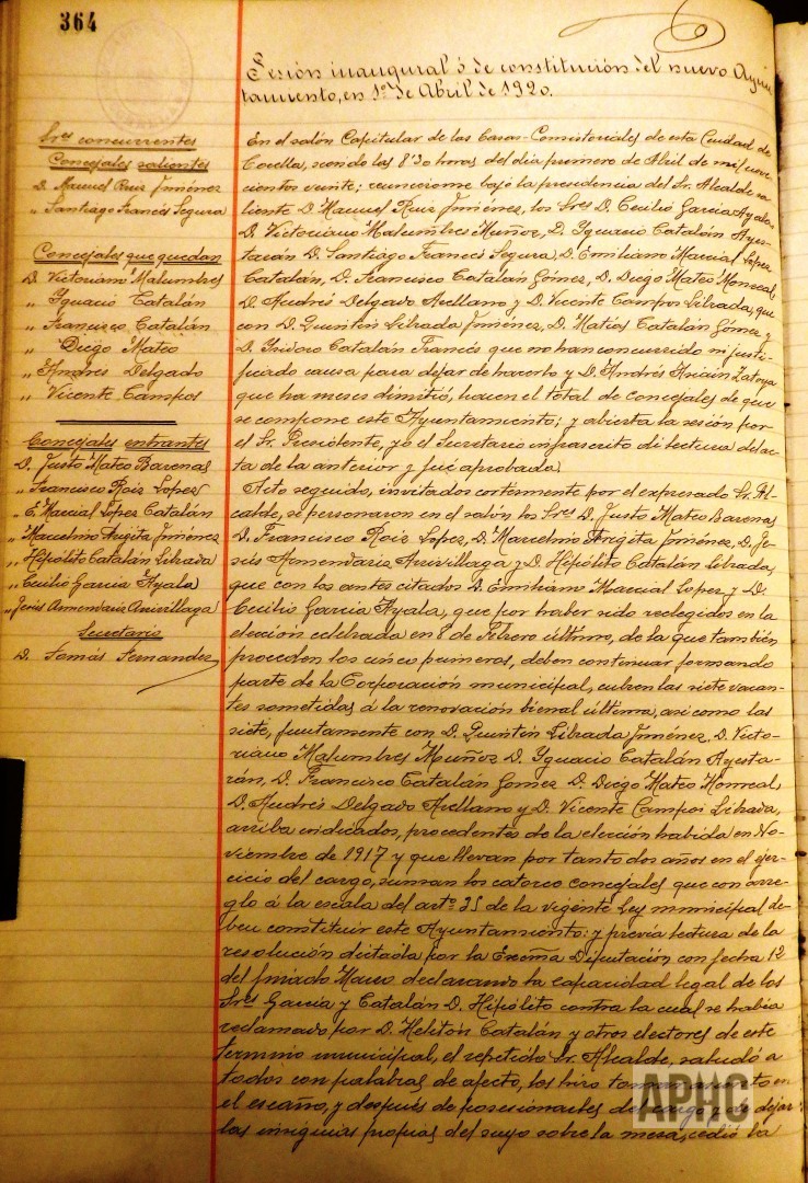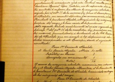– Realizadas las oportunas comparecencias y votaciones el nuevo Ayuntamiento quedó constituido de la forma siguiente: Alcalde, Emiliano Marcial López Catalán; 1º Teniente alcalde, Cecilio García Ayala; 2º Teniente alcalde, Jesús Armendáriz Arrivillaga; 3º Teniente alcalde, Marcelino Arigita Jiménez; Síndico 1º, Ignacio Catalán Ayestarán; Síndico suplente, Diego Mateo Monreal; Concejales, Justo Mateo Barenas, Francisco Roiz López, Quintín Librada Jiménez, Victoriano Malumbres, Francisco Catalán Gómez, Hipólito Catalán, Andrés Delgado y Vicente Campos Librada. Se acuerda que las sesiones ordinarias se celebren los jueves a las 19 horas.