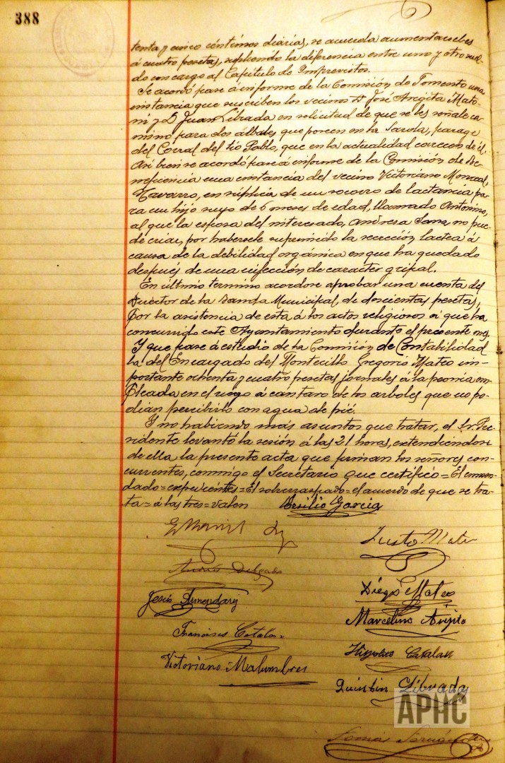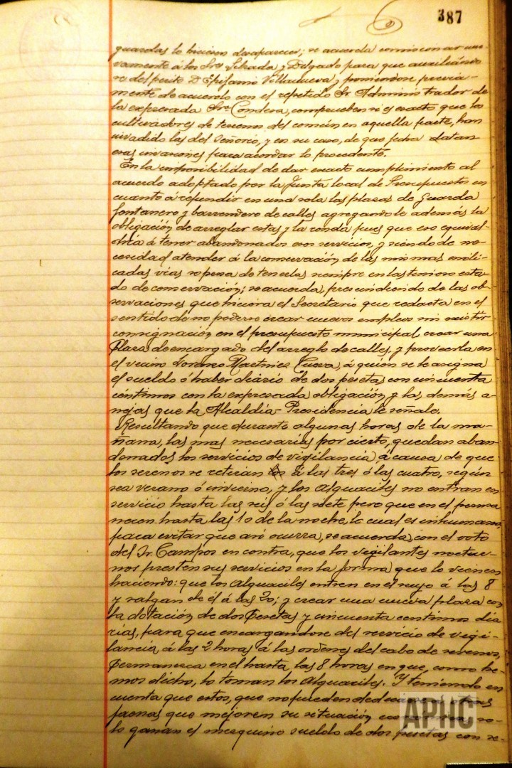 – Se nombra para el cargo de Guarda fontanero, barrendero de calles y arreglo de calles a Lorenzo Martínez Cueva, con al haber diario de 2,50 pesetas.