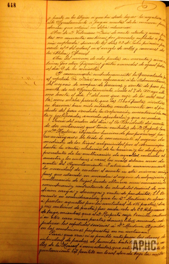 – Por las consideraciones expuestas, se acuerda adjudicar a Martina Aguilar, los servicios de carga y descarga y venta de productos, relativos al trigo que el Ayuntamiento debe adquirir para fabricación de harina; abonando el Ayuntamiento la cantidad de 0,16 pesetas por cada robo de 22 kilogramos de trigo